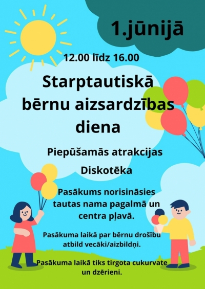 - jūnijā no pulksten 12.00 līdz 16.00 arī Lestenē būs Bērnu aizsardzības dienai veltītas āra aktivitātes ar piepūšamajām atrakcijām. Būs diskotēka bērniem.