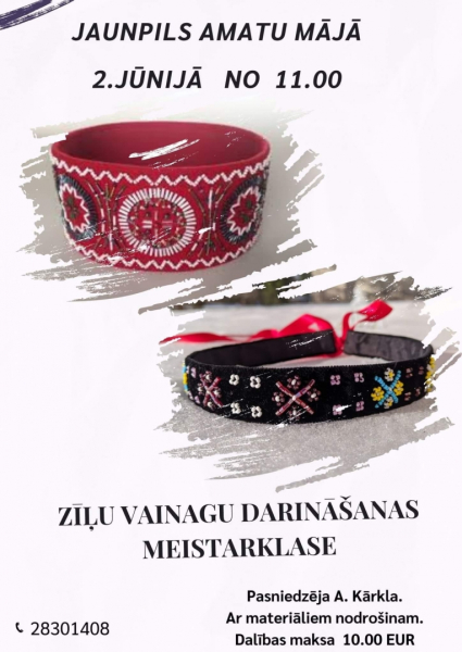 Noslēdz nedēļu radoši! Jaunpils Amatu māja aicina 2. jūnijā pulksten 11.00 uz Zīļu vainagu darināšanas meistarklasi. Meistarklasi vadīs Antra Kārkla.
