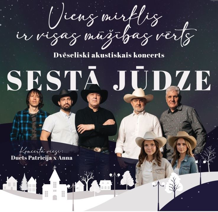Svētdienas pēcpusdienā kantrimūzikas grupa “Sestā Jūdze” piedāvās sirsnīgu Ziemassvētku dziesmu programmu Lestenes baznīcā, kas ļaus baudīt akustisku un dvēselisku pieredzi. Koncertā valdīs cerība un ticība gaišākai rītdienai, radot īpašu svētku noskaņu. Apmeklētāji varēs iegrimt melodijās un Ziemassvētku brīnuma sajūtā. Šis dēvējams par neierastu pasākumu, jo kantrimūziķu uzstāšanās baznīcā ir neparasts notikums. Norises vieta: Lestenes luterāņu baznīca, Lestene, Lestenes pagasts, Tukuma novads. Norises laiks: 14.12.2025 plkst. 15:00. Vairāk informācijas: 25455928