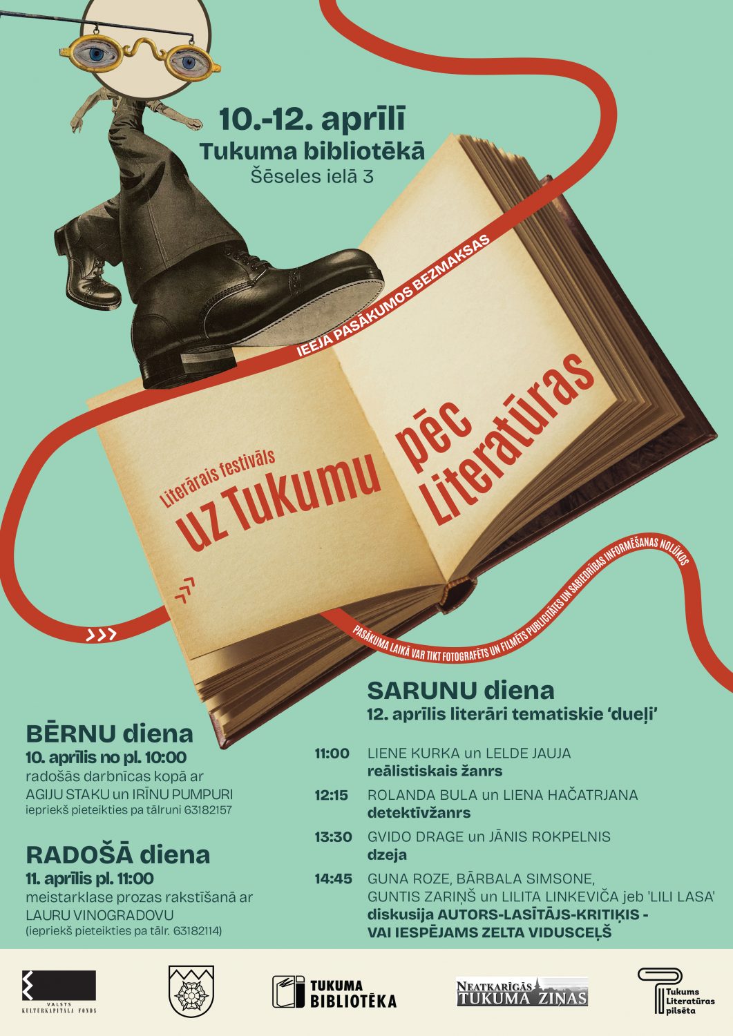 Vēl šajā mēnesī: no 10. līdz 12.aprīlim noritēs literārais festivāls «Uz Tukumu Pēc Literatūras», kas ir par un ap lasītvēlmes veicināšanai un latviešu oriģināldarbu iepazīšanu dažādām paaudzēm; 16. aprīli 18.00 – bibliotēkā būs tikšanās ar mākslinieci Ilzi Pauliņu un sarunas par grāmatas «Caur Viņa brūcēm mēs esam dziedināti» tapšanu.