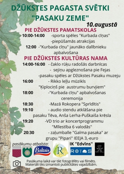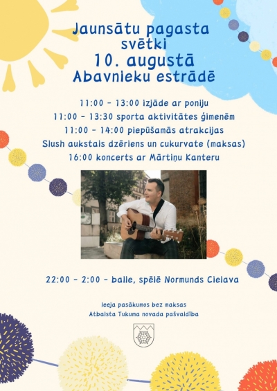 Nedēļas nogalē, 10. augustā daudzviet novadā ar plašu programmu tiks svinēti pagastu svētki. Jau no 10.00 rītā ar sacensībām tie sāksies Engurē, bet ap 13.00 svētkus sāks atzīmēt Jaunpilī, kur būs svētku tirdziņš, viduslaiku noskaņas, grupas «Raxtu Raxti» vakara koncerts estrādē. Arī Džūkstē svētki sāksies ar sporta spēlēm pamatskolas teritorijā, bet 14.00 ar darbnīcām un uzvedumiem tos atklās pie kultūras nama. Vakarpusē – 18.30 – var doties baudīt rokoperu «Džūkstes sprīdītis». Visbeidzot Jaunsātos sportiskās aktivitātes lieliem un maziem būs no 11.00 līdz 16.00, bet vakara dejas Abavnieku estrādē – no 22.00.