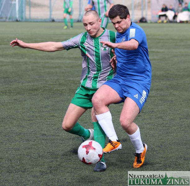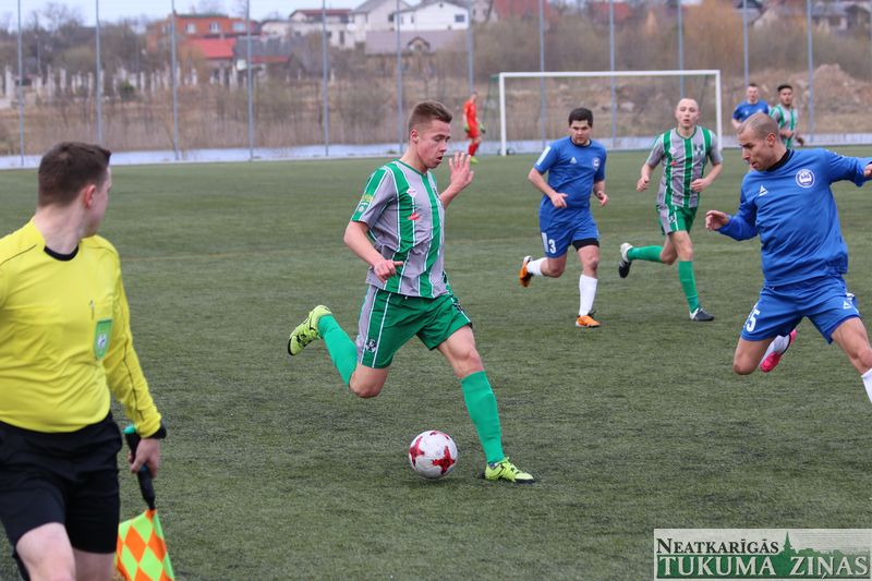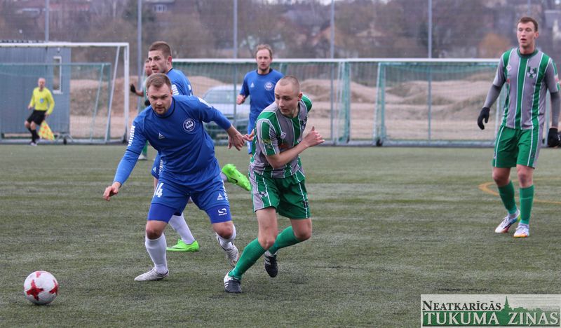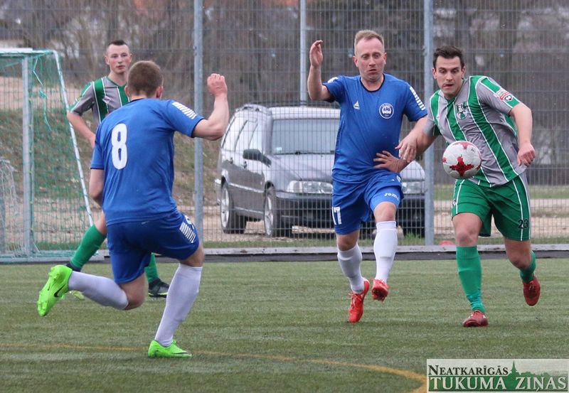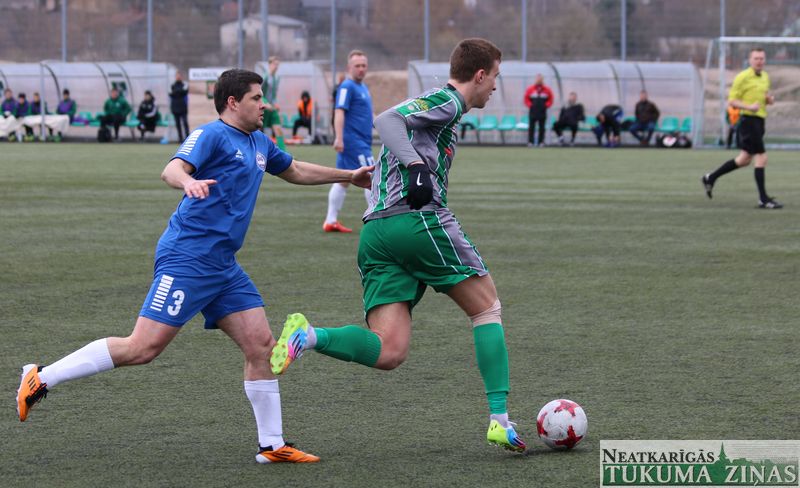 Sestdien, 15. aprīlī, pirmo šīs sezonas spēli aizvadīja FK “Tukums-2000/TSS”, kuri savā laukumā uzņēma FK “Ogre”. Spēle noslēdzās ar neizšķirtu rezultātu – 1:1. Vārtus tukumnieku labā, pēc soda sitiena izpildīšanas, guva Rinalds Kalnciems.