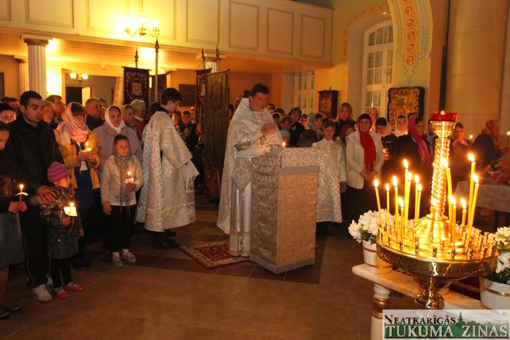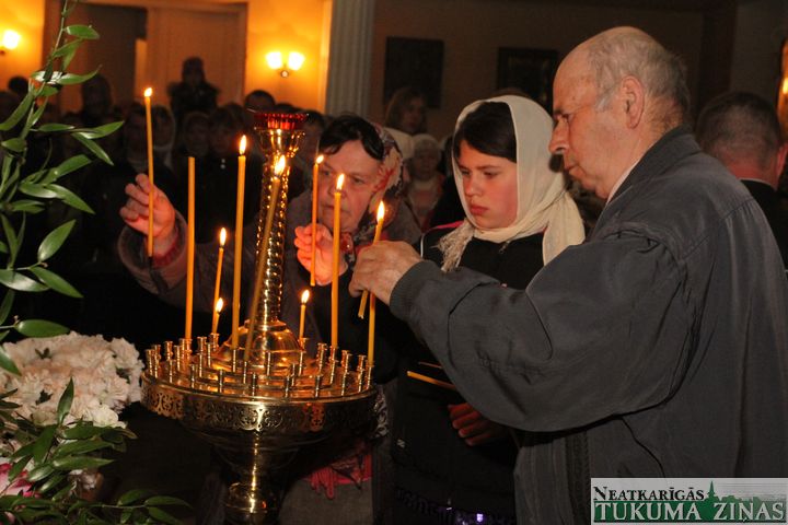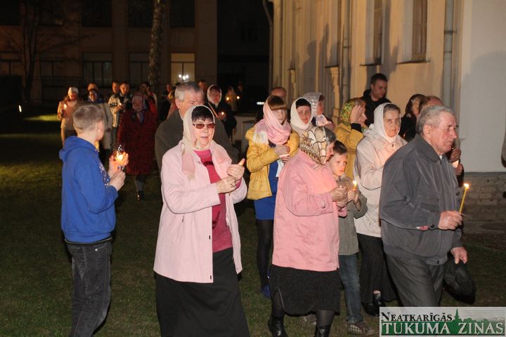 Jēzus Kristus augšāmcelšanos pareizticīgie svin šodien – 5. maijā. Svētā Nikolaja Tukuma draudze Kristus augšāmcelšanās brīdi pusnaktī sagaidīja Dievnamā. Dievkalpojumu vadīja draudzes mācītājs Tēvs Joans. Brīdī, kad Pestītājs ir augšām cēlies un baznīcēni gāja svētceļojumā apkārt Dievnamam, klāt bija daudz ļaužu. Aizdegtām svecēm rokās, trīsreiz ejot apkārt baznīcai, viņi lūdza Visaugstāko par savām ģimenēm, savu valsti.