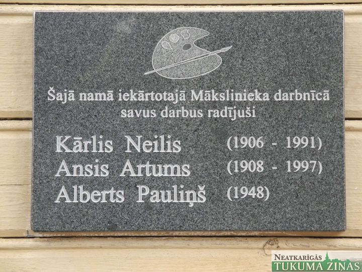 Piektdien, 12. septembrī, Tukumā, Rīgas ielā 27, pie mākslinieku Kārļa Neiļa, Aša Artuma un Alberta Pauliņa darbnīcas atklāja piemiņas plāksni. Tas tika darīts Eiropas kultūras dienas un projekta «Rīgas ielas kultūrvēsturiskais tēls» ietvaros. Atmiņās par māksliniekiem – Tukuma dižgariem, dalījās Mucenieku ģimene, visas Rīgas ielas iedzīvotāji, mākslinieku radi un paziņas. Piemiņas plāksni atklāja K. Neiļa krustmeita Baiba Gabaliņa un mākslinieks Alberts Pauliņš. Pasākuma viesi aplūkoja mākslinieku darbnīcu un dārzu, kur tapušas daudzas gleznas.
