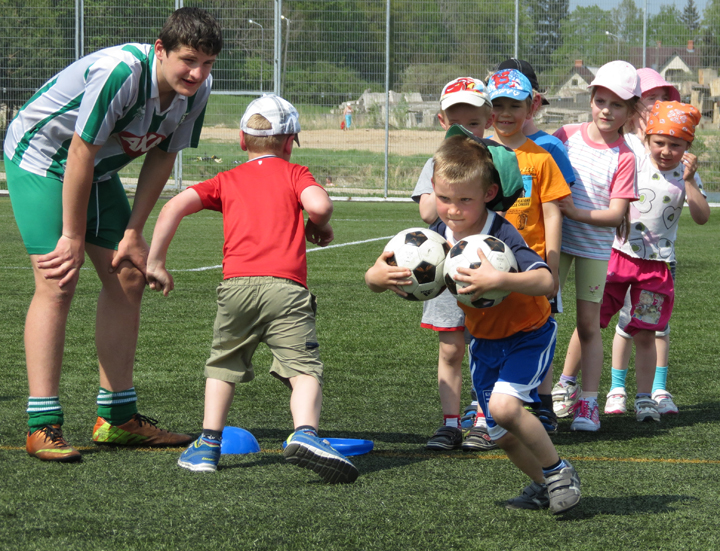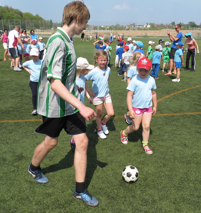 Piektdien, 17. aprīlī, Tukumā norisinājās Futbola diena, kuru organizēja FK “Tukums-2000/Tukuma sporta skola”. Visi mazie bērni piedalījās stafetēs un dažādās rotaļās, un, protams, spēlēja futbolu. Visās rotaļās mazajiem bērnudārzniekiem palīdzēja Tukuma futbola kluba jaunie futbolisti un treneri, bet dalībniekus uzmundrināja arī “Knifiņa” suņuki. Kad komandas bija veikušas visus uzdevumus, tad mazie dalībnieki  tika pie diplomiem un gardām gardām dāvanām.