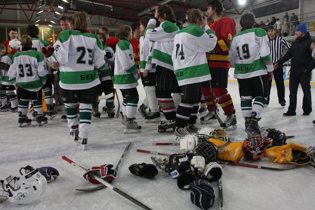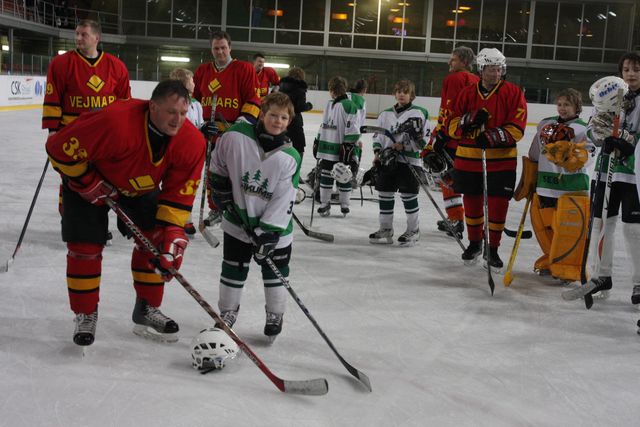 Otrajā puslaikā „veči” sasparojās. Puikas arī nometa tempu, lai mājās nerastos ģimenes strīdi, un spēle beidzās ar draudzīgu neizšķirtu – 8:8. Vēlāk hokejisti vērtēja pērnajā gadā sasniegto un sveica sezonas labākos spēlētājus.