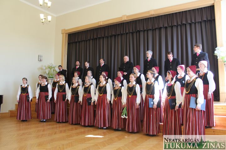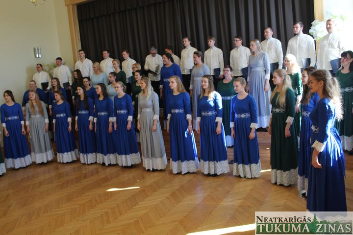 Sestdien, 13. aprīlī, Tukuma Raiņa ģimnāzijā Tukuma, Engures, Kandavas un Jaunpils novada kori izdziedāja šovasar Tukumā gaidāmo «Precību spēļu» lielkoncerta dziesmas.