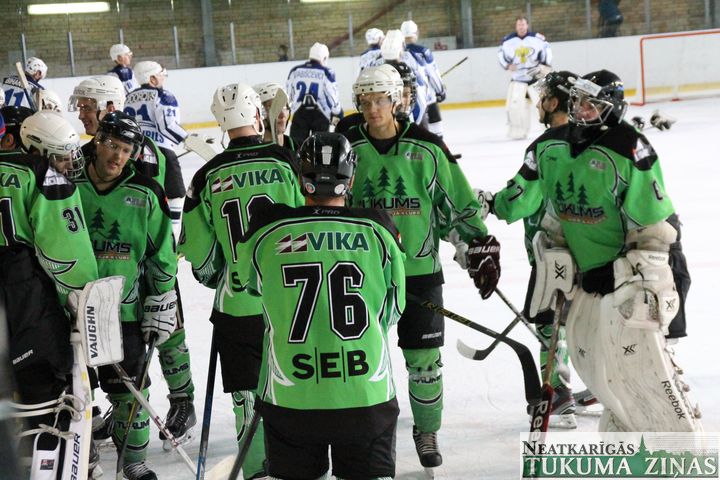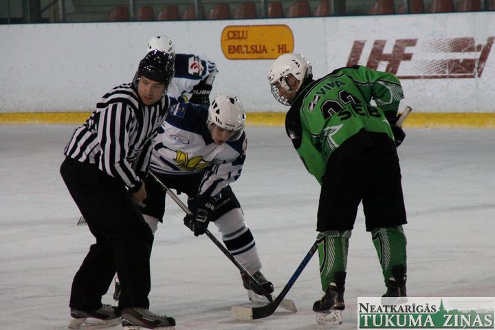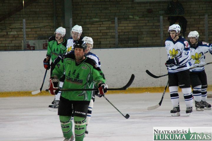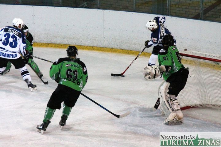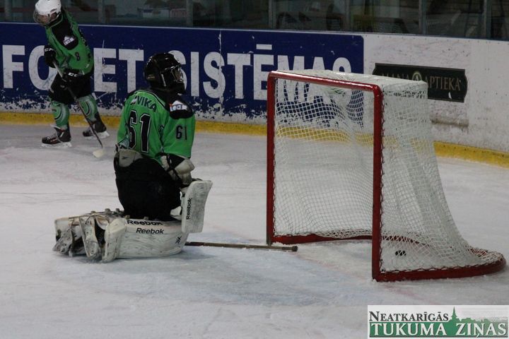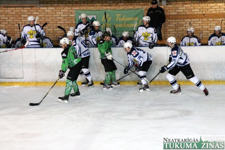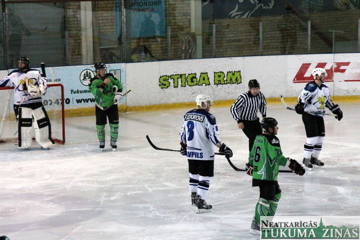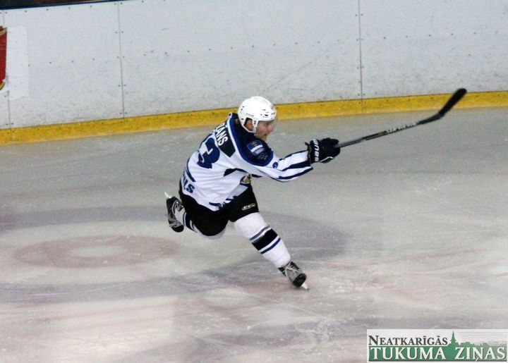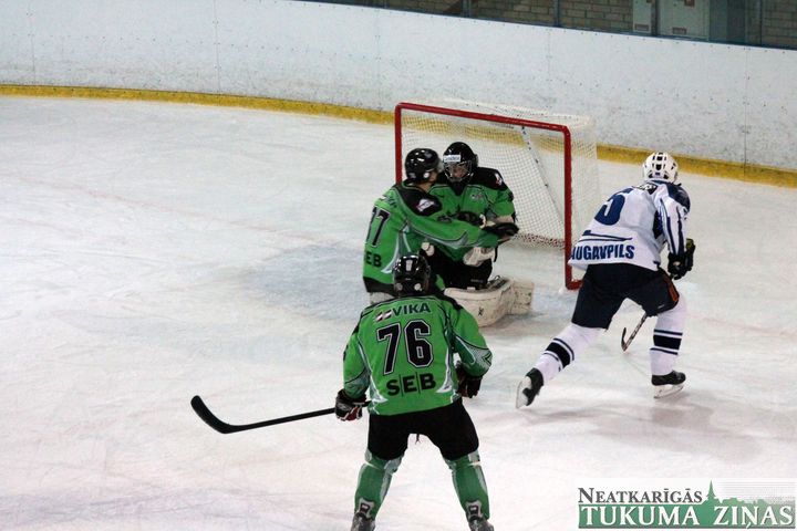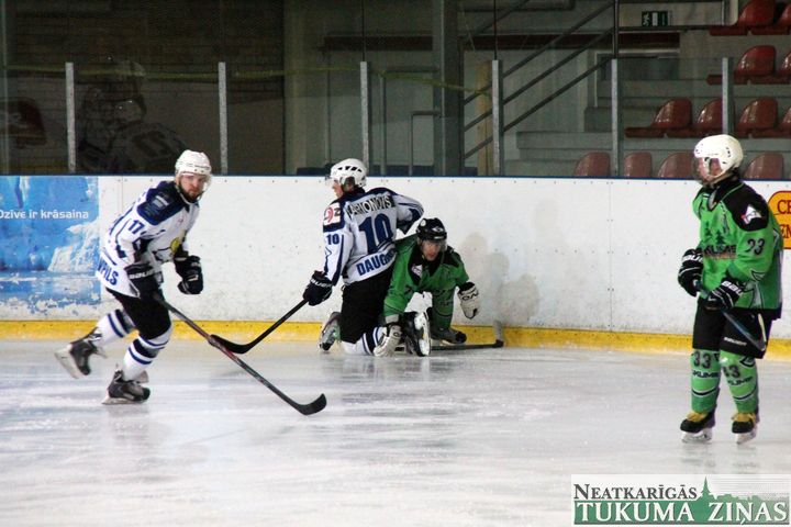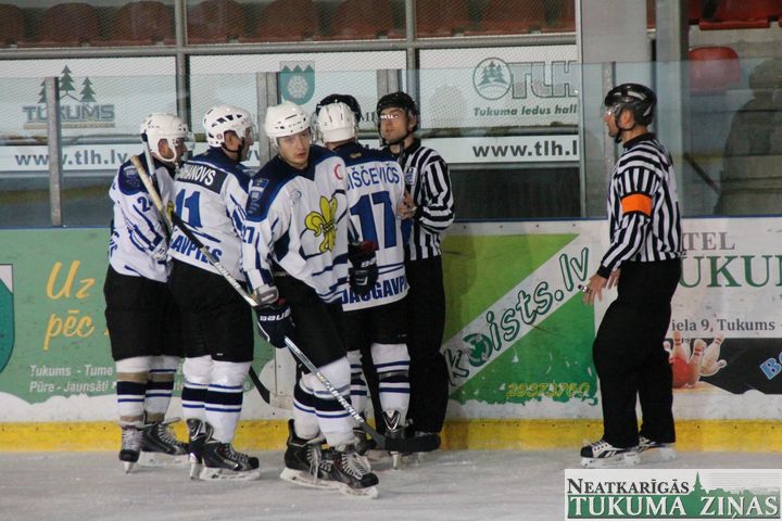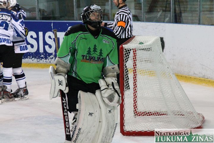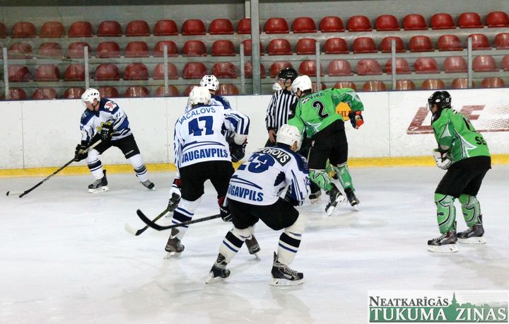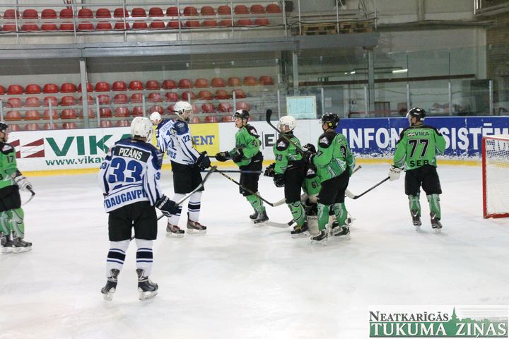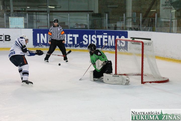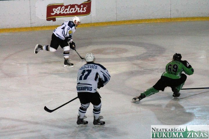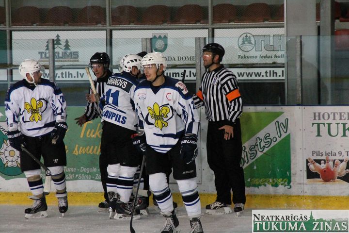 Latvijas hokeja čempionāta 1. līgas spēlē svētdien, 11. oktobrī, HK «Tukums/Stiga RM» pēcspēles metienos ar rezultātu 3:2 uzvarēja «RM Daugavpils/LDZ Cargo».