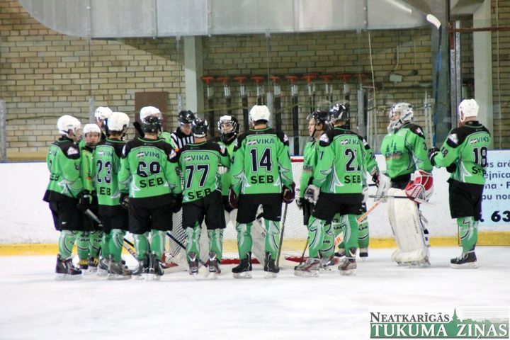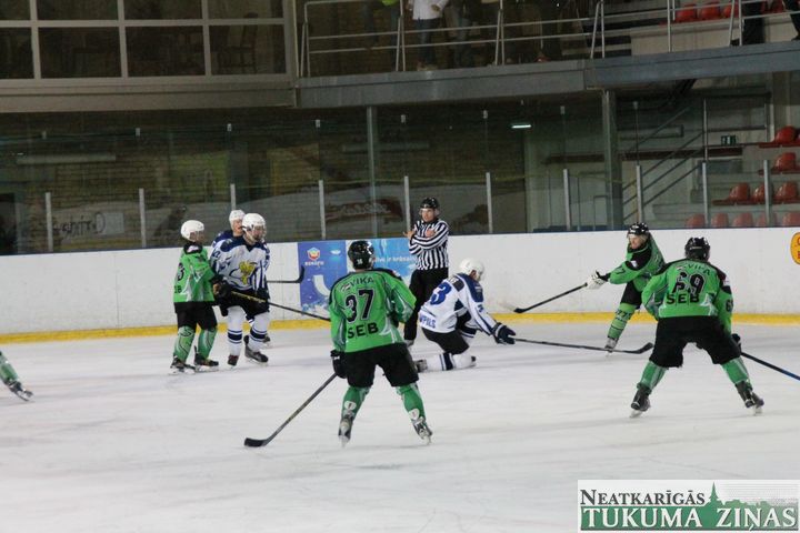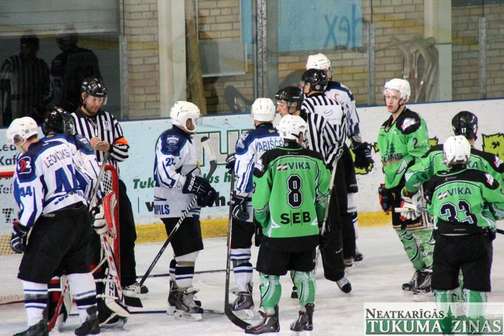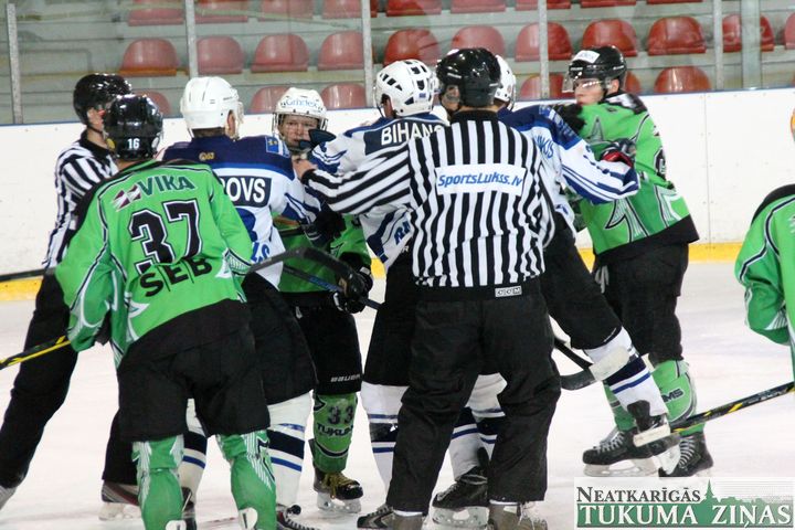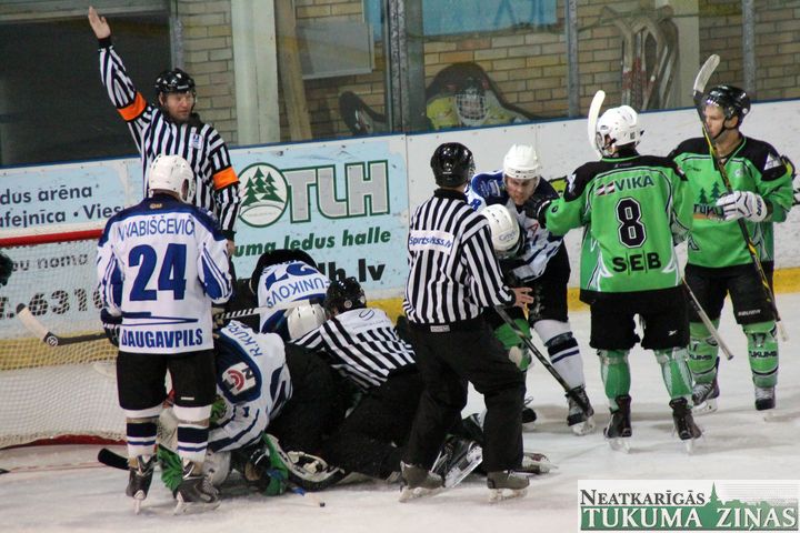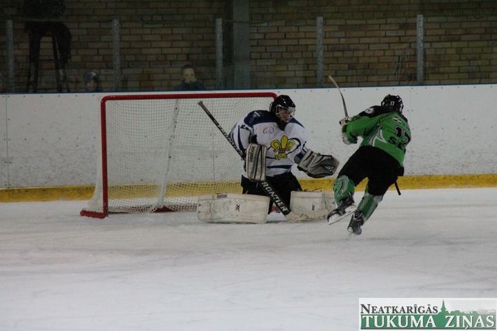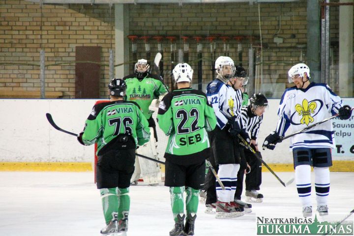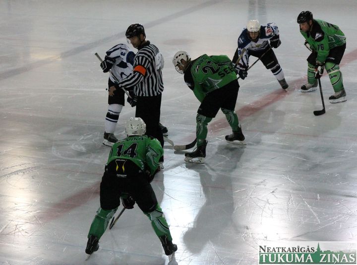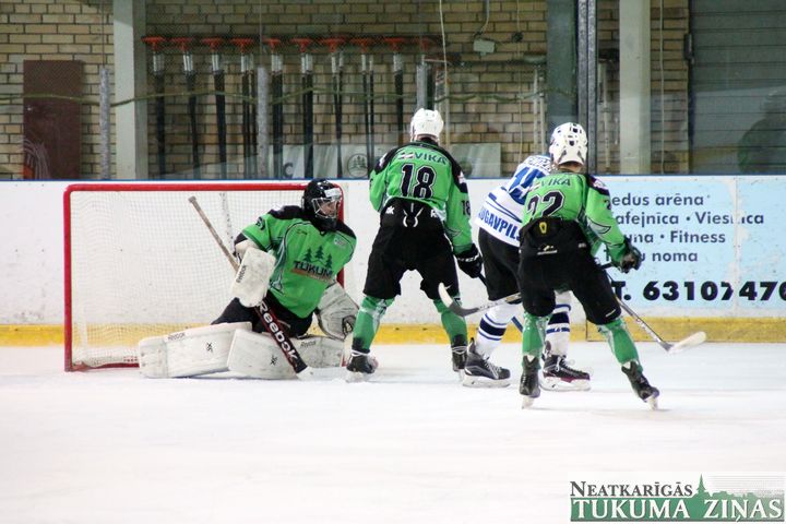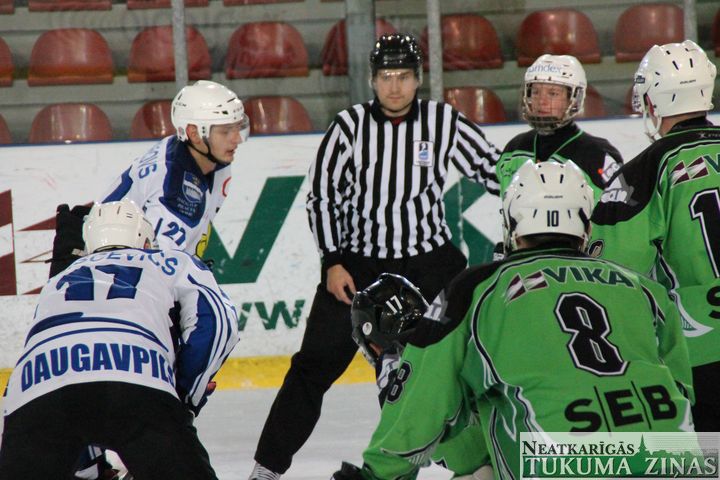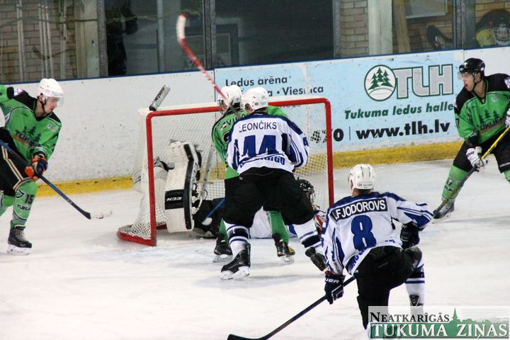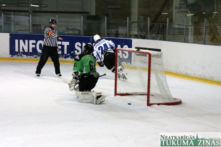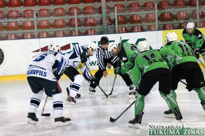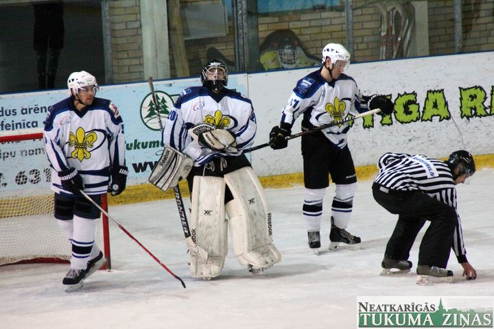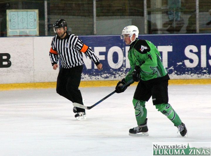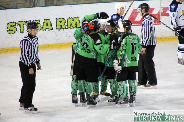 Latvijas hokeja čempionāta 1. līgas spēlē svētdien, 11. oktobrī, HK «Tukums/Stiga RM» pēcspēles metienos ar rezultātu 3:2 uzvarēja «RM Daugavpils/LDZ Cargo».