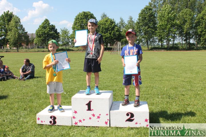 Skriešanā: I grupā zēniem 1. vietā Roberts Sildedzis-Balderis (PII «Zemenīte»), 2. – Egnārs Zaļais (PII «Zīļuks»), Kristers Alberts Tolis (PII «Zīļuks»); II grupā zēniem 1. vietā Sebastians Jānis Piuss, Ivars Gindra (PII «Zīļuks»), Gustavs Randohs (PII »Zemenīte»); I grupas meitenēm 1. vietā Patrīcija Petroviča, 2. – Annija Celma, 3. – Linda Leimane (PII «Zīļuks»); II grupā meitenēm 1. vietā Anna Jurēvica (PII «Zemenīte»), 2. – Emīlija Zeberiņa, 3. – Estere Dišlere (PII «Zīļuks»).