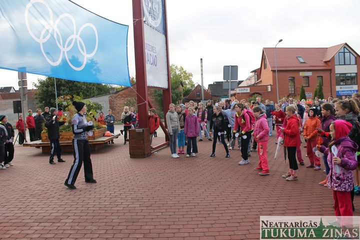 Piektdien, 27. septembrī, 10.00 Olimpiskās dienas ietvaros skolēni un bērndārznieki Tukumā vingroja “kolektīvi” trijās vietās. Aicināti iesaistīties un vingrot savās darba vietās bija arī pieaugušie.