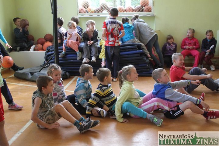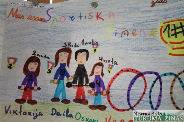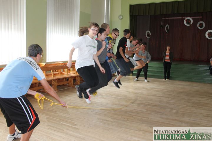 Jaunpils vidusskolā visi 350 skolēni piedalījās un ap 100 bērnu mammas. Tēti nepiedalījās. Viņi strādā un ģimenes apgādā. Sportisko dienu vadīja direktora vietniece Irēna Martuzāne un sporta skolotāji Dace Adiņa un Artūrs Zaremba. Olimpisko karogu skolas pagalmā mastā uzvilka jaunā basketboliste Žaklīna Pahmurkina. Irēnas Martuzānes vadībā visi vingroja. Pasākumā piedalījās Latvijas Olimpiskās komitejas ģenerāldirektors Žoržs Tikmers. Viņš bērnus rosināja sportot un kļūt par olimpiešiem. Bērni sporta zālē sacentās veiklības stafetēs. Stadionā – vieglatlētikas disciplīnās.