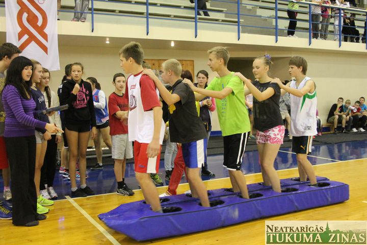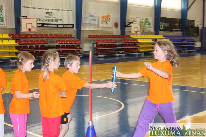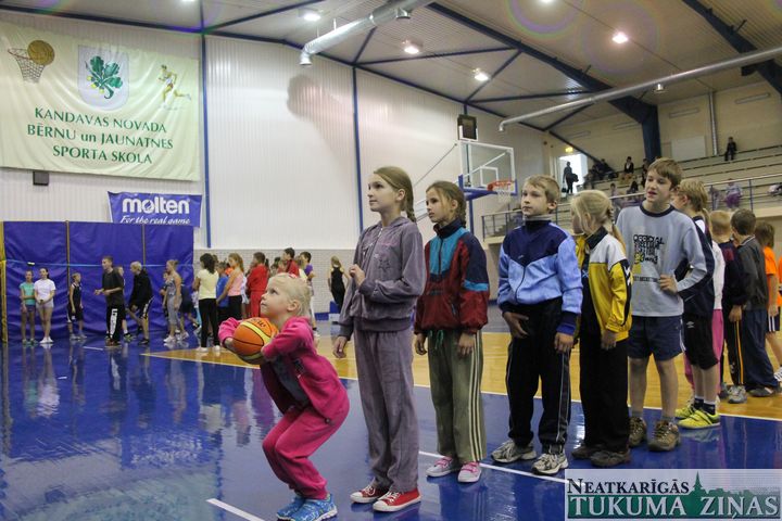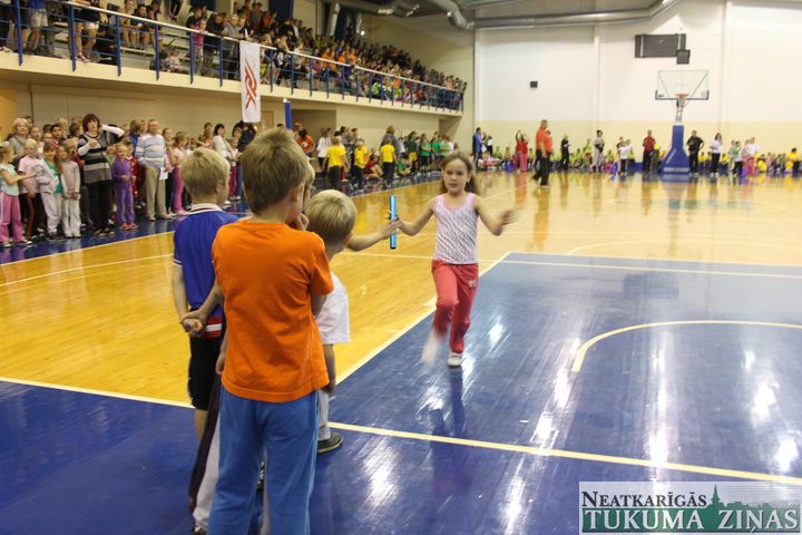 Kandavas novada skolas uz rīta vingrošanu, ko vadīja olimpiskais vēstnesis Jānis Ozols, pulcējās Kandavas sporta hallē. Pēc iesildīšanās un oficiālās stafetes pievarēšanas, kurā šogad naskāki izrādījās Kandavas K. Mīlenbaha vidusskolas skrējēji, katrai skolai un klasei bija iespēja sevi apliecināt arī citās disciplīnās. Tā halles zālē tika noskaidroti labākie basketbola sodiņu metēji un pendeļu spērēji, kā arī klases vienotību vajadzēja pierādīt ritmiskā šļūkšanā. Savukārt ģērbtuvēs varēja iemēģināt roku šautriņmešanā, foajē – izmērīt rokas spiediena spēku un atslodzei – izspēlēt kādu šaha vai dambretes partiju. Visbeidzot dažādi pārbaudījumi bērnus sagaidīja arī K. Mīlenbaha vidusskolā. Gaiteņos nācās mest smilšu maisiņus, uz ātrumu iesist naglu vai izveidot “dēļu laipiņu“, zālē – koncentrēties uz cipariņu meklēšanu un lecamauklu, kas, neaizķeroties, bija jāpārlec visai klasei vienlaikus.