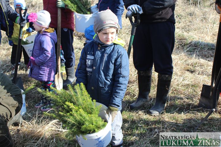 Pūres bērndārznieki iestāda 400 eglītes /FOTO/
