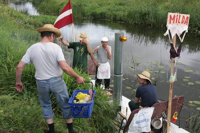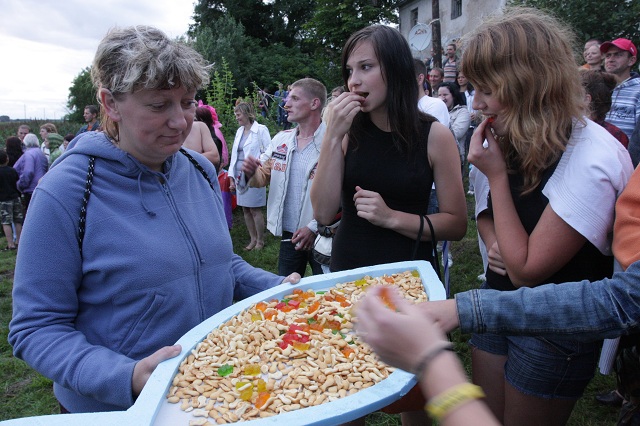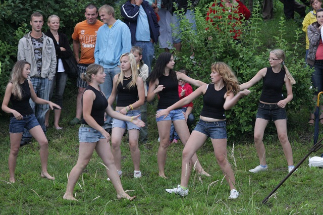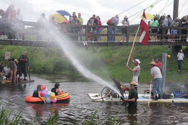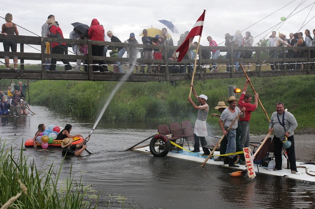Vakar 24. jūlijā turpinājās Pūres svētku svinēšana. Ļaudis estrādē noskatījās pašmāju aktieru teātra spēli un vēlāk ar dažādiem netradicionāliem braukšanas līdzekļiem kuģoja lejup pa Abavu, sacentās virves vilkšanā, skriešanā pāri Abavai un visvisādi jautrojās. Pagastļaudis un viņu sābri svētkos bija kuplā pulkā – 300 un vairāk ļaužu.