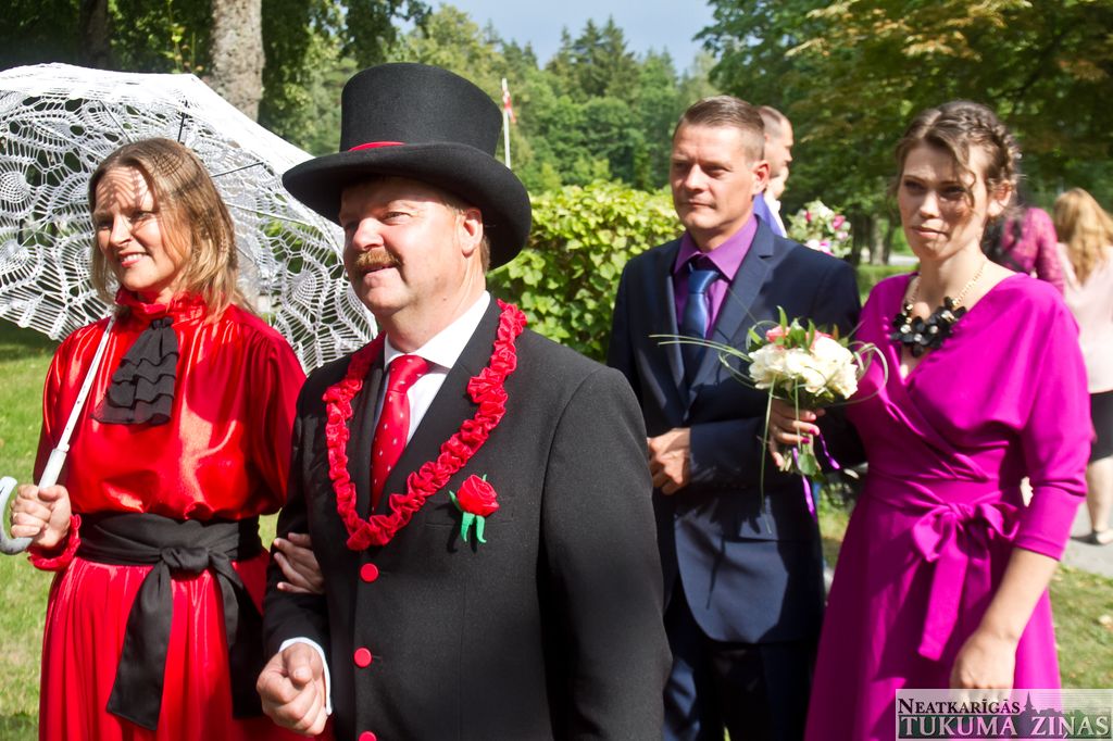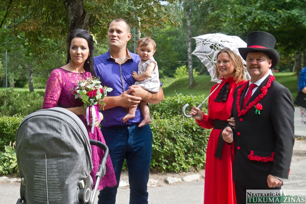 Rožu kāzas sākās pie Pūres skolas, kur pāri uzklausīja Tukuma Dzimtsarakstu nodaļas vadītāja Smaidas Kokinas apsveikuma vārdus un pēc viņas aicinājuma ieskatījās viens otram acīs, atcerējās savu kāzu dienu un tajā teiktos vārdus, kā arī uzklausīja stāstu par podziņu, kas, piešūta piedurknītei, palīdz vienam otru sargāt… Pēc tam, pēc Amora mudinājuma vai nu vīrs, vai sieva izšāva bultu, darbojās Šokolādes muzejā un Alpinārijā, savukārt vakarpusē bija svinīgā ceremonija Pūres kultūras namā. To vadīja Sandra Svarāne. Un vēl pēc tam sekoja īpašā sagaidīšana Rožu svētku atklāšanā Tukumā, kur pāri piedzīvoja rožu ziedlapiņu lietu un īpašo deju Brīvības laukumā.
