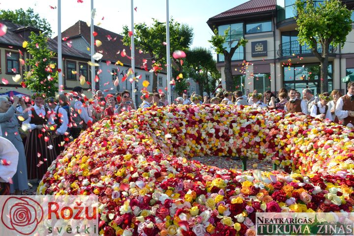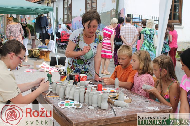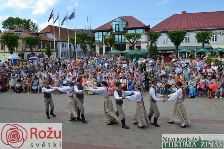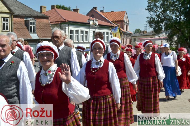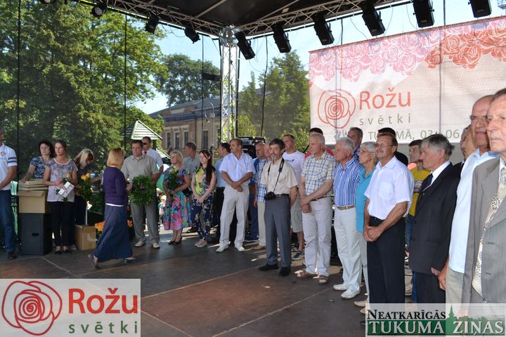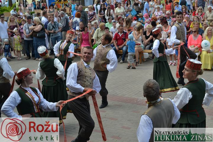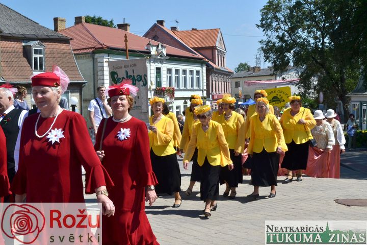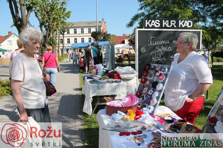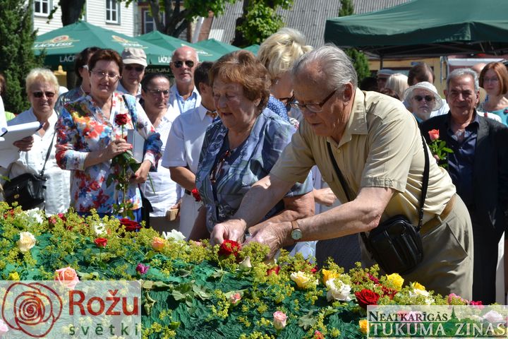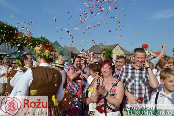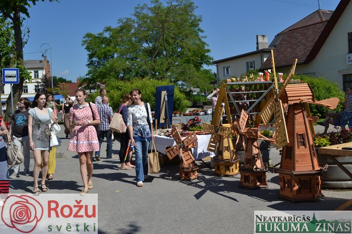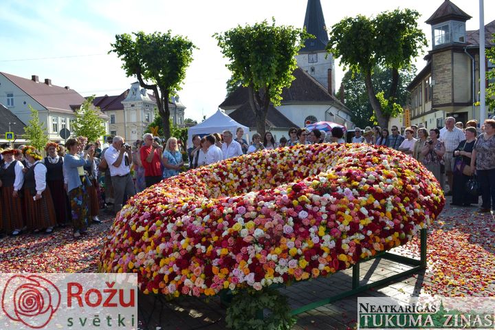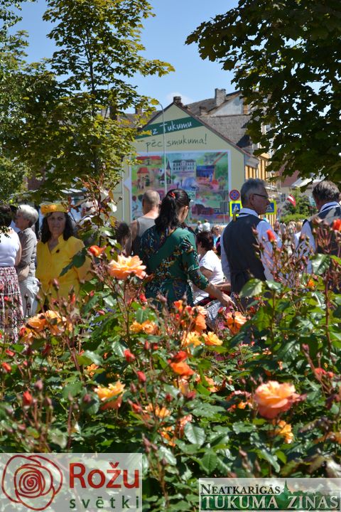 Sestdiena sākusies ar rožu vainaga un izstādes atklāšanu.  Vainagu oficiāli atklāja dzejniece Māra Zālīte un novada domes priekšsēdētājs Juris Šulcs. Tukuma muzejs uz izstādes «No dubļiem līdz rozēm» atklāšanu bija aicinājis bijušā Tukuma rajona autosportista veterānus. Izstāde Pils tornī apskatāma šodien līdz 22.00. Svētki turpinās.