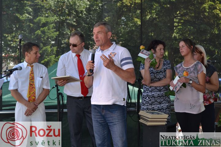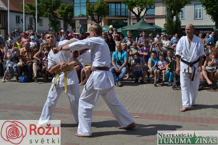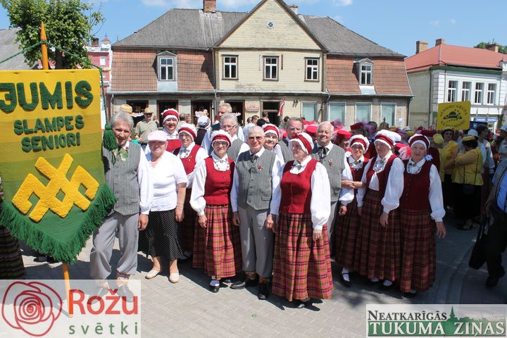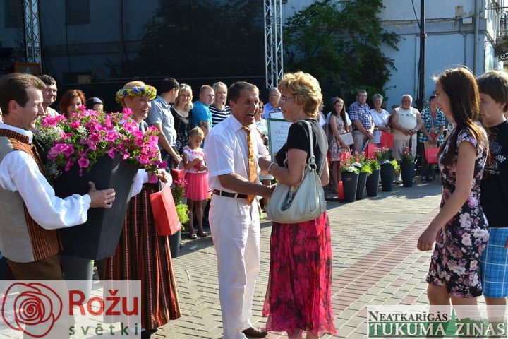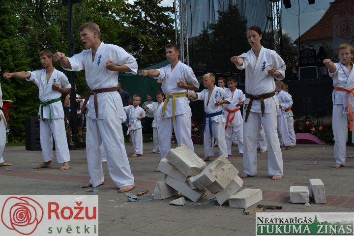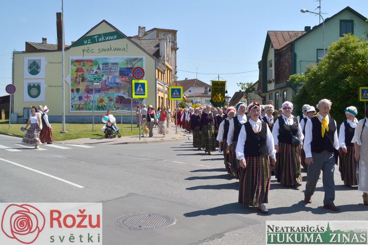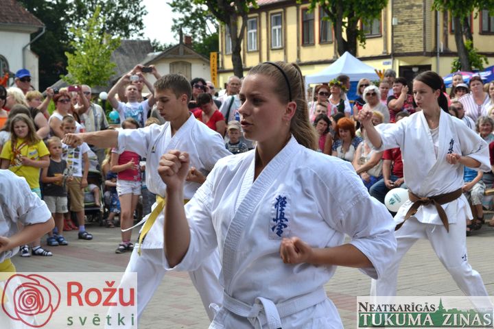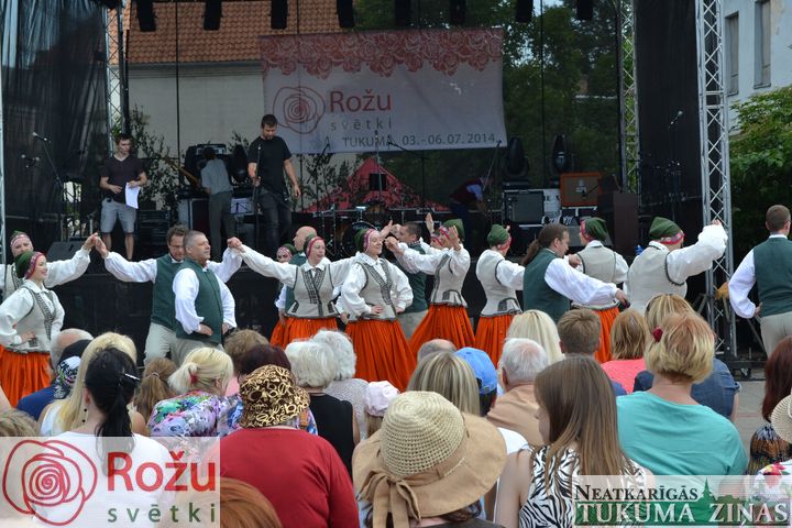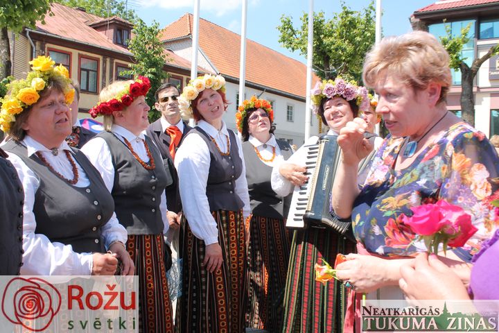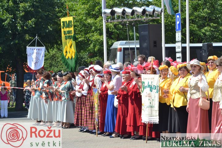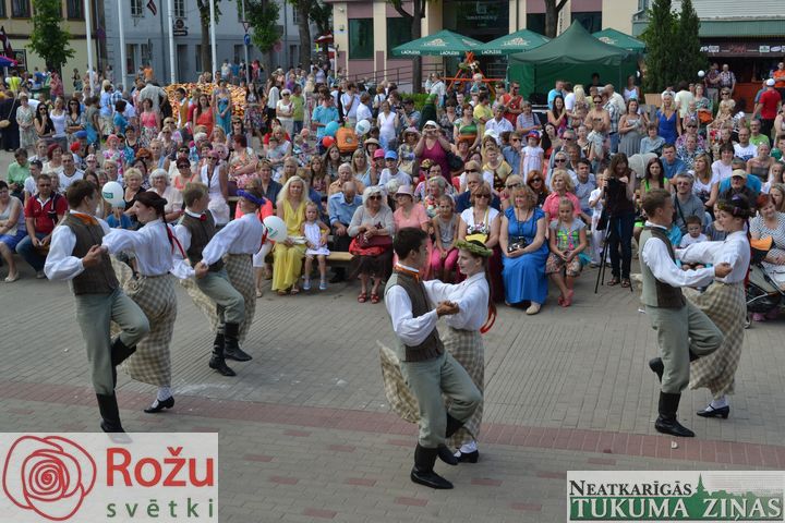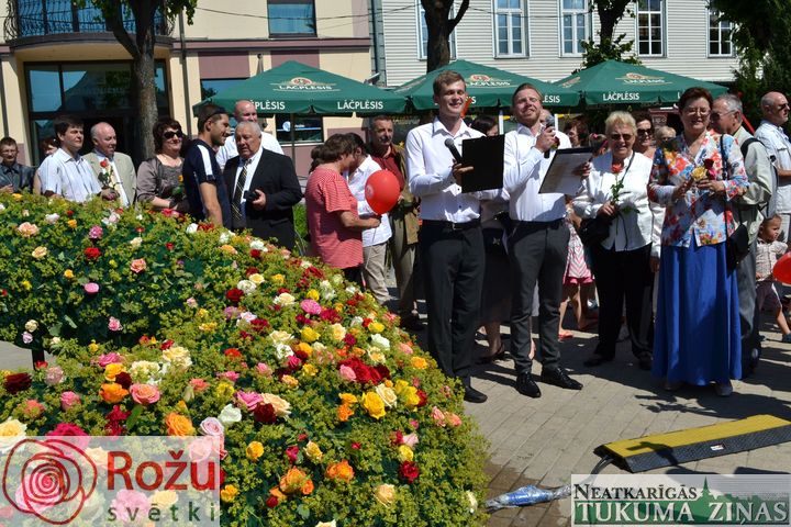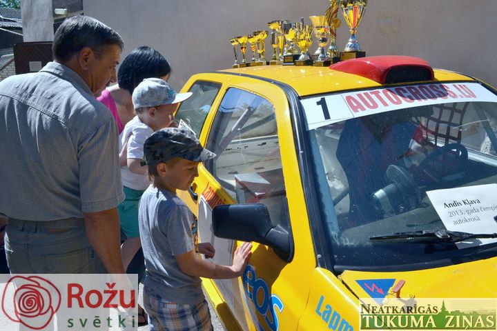 Sestdiena sākusies ar rožu vainaga un izstādes atklāšanu.  Vainagu oficiāli atklāja dzejniece Māra Zālīte un novada domes priekšsēdētājs Juris Šulcs. Tukuma muzejs uz izstādes «No dubļiem līdz rozēm» atklāšanu bija aicinājis bijušā Tukuma rajona autosportista veterānus. Izstāde Pils tornī apskatāma šodien līdz 22.00. Svētki turpinās.