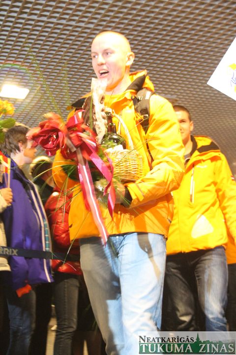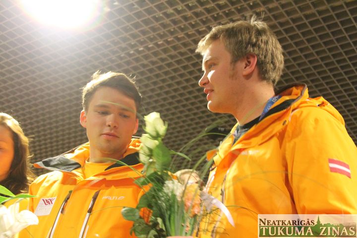Naktī no pirmdienas uz otrdienu jau otro reizi šo olimpisko spēļu laikā lidmašīnu reisu no Sočiem devās sagaidīt arī Tukuma novada delegācija – pašvaldības un sporta klubu pārstāvji. Viņu vidū aktīvākie Tukuma hokeja kluba jaunieši. Kā gan citādi, ja bobsleja sudraba medaļnieku gods pienākas arī viņu bijušajam trenerim, tukumniekam Jānim Ozolam. Bet Jāņa vissirsnīgāko sagaidītāju pulkā, protams, viņa ģimene.