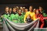 Vo hokejisti malači!Kārīgi sagaida Tukumniekus no Sočiem, i karogs līdzi, i smaidīgi, kaut arī tas viss notika vēlu naktī.