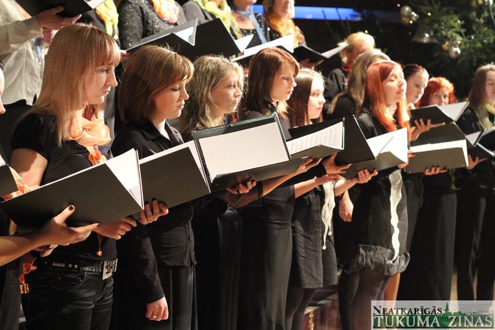 Piektdienas, 21. decembra, vakarā kora dāmas Jēzus Kristus dzimšanai par godu savu artavu nodziedāja. Diriģenta Jāņa Almaņa un koncertmeistares Sabīnes Brantas vadīti koristes skanīgi dziedāja, arī Tukuma kultūras nama dāmu vokālais ansamblis Ingūnas Kaļķes vadībā. Zāle gan bija pustukša. Toties balsis atbalsojās kā augstos svētkos ir jābūt.