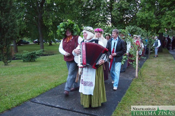21. jūnijā, īstajos saulgriežos, kad diena visgarākā un nakts visīsākā, Slampes pagasts līgoja līdz rīta ausmai. Vēl pirms saulrieta savu varēšanu rādīja pašdarbnieki, tika iedegts lielais ugunskurs, pundele uz dīķa salas un gaisā tika laistas laternas. Un, protams, ka jāņabērni tika cienāti ar sieru un alu. Līgo!