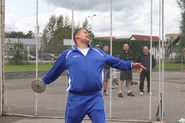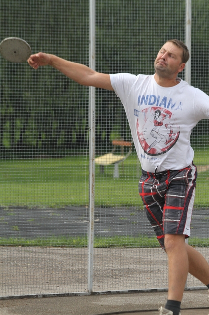 Tā notika šodien 29. augustā. Tukuma sporta un atpūtas kompleksa stadions teju tukšs. Vārti aizslēgti. Piebrauca automašīnas, plecīgi vīri izkāpa. Kopā ar sievām, draudzenēm, bērniem, izspraucās caur režģiem un raitā solī devās uz diska mešanas sektoru. Vieglatlētikas sacensības tikai diska mešanā Tukumā notika pirmo reizi. To rosinātājs – sportists, sporta dzīves dvēsele un arī labs cilvēks – Tālivaldis Krūmiņš. T. Krūmiņu atbalstīja tumenieks Aivars Garančs un Tukuma vieglatlētikas klubs. Pirmajās Vistukuma diska mešanas sacensībās piedalījās 30 dalībnieki. Sacensību rezultātus lasiet mūsu laikraksta otrdienas numurā.
