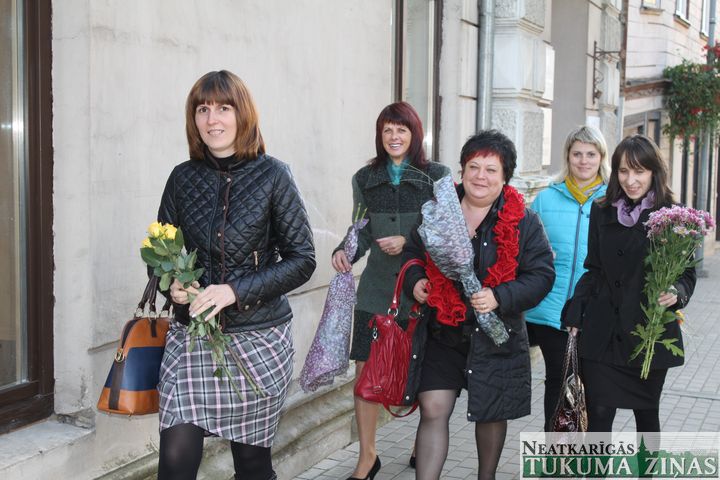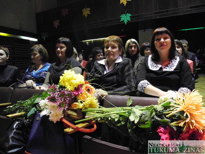 Šodien, 3. oktobrī, Tukuma kultūras namā tika sveikti Tukuma un Jaunpils novada skolotāji, kas saņēma Izglītības un zinātnes ministrijas un Tukuma novada Izglītības pārvaldes Atzinības rakstus, kā arī «Swedbank» balvas. Kā arī savu tuvāko un tālāko kolēģu dāvinātos, visskaistākos rudens ziedus.
