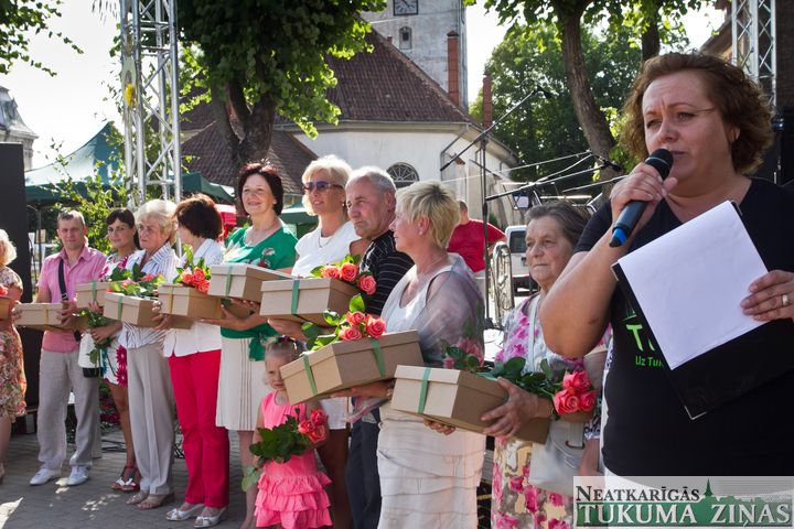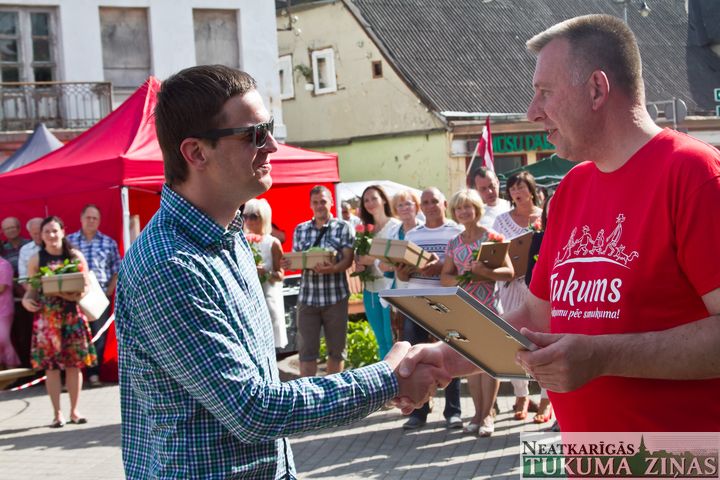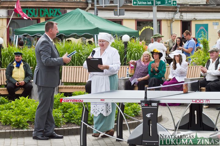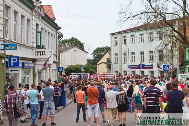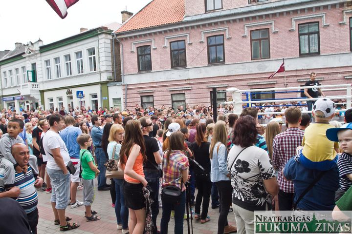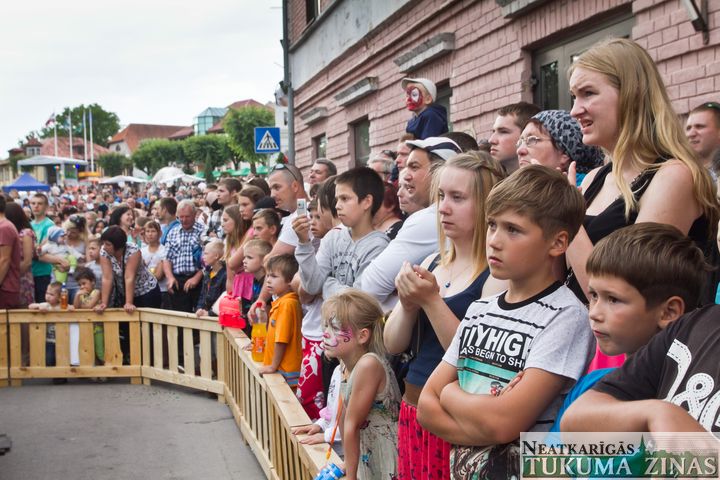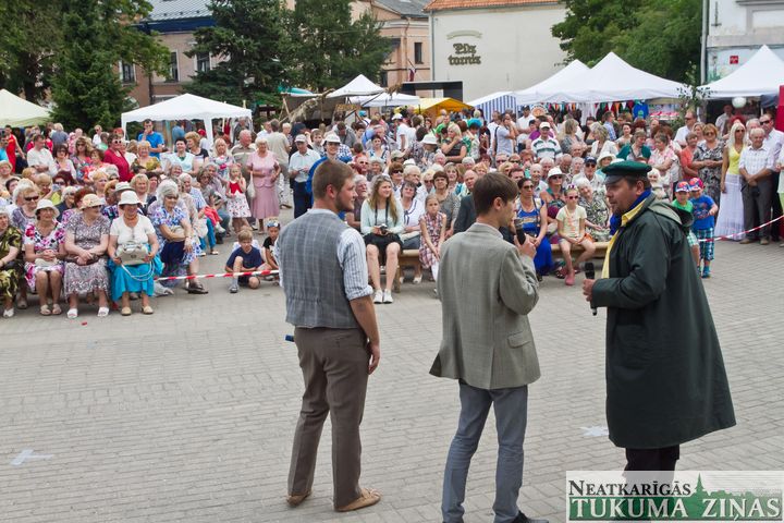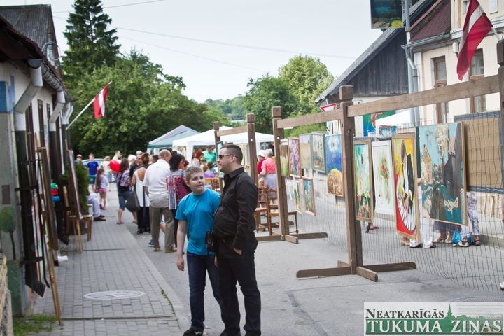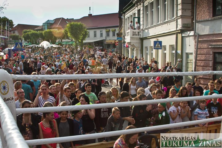 Lielā Tukuma pilsētas svētku svinēšanas diena bija sestdien, kad ne tikai mākslu un kultūru , bet arī vēderpriekus varēja baudīt vai katrā pilsētas stūrītī. Pilsētas muzejā atklāja jaunu izstādi, uz skatuves Brīvības laukumā kāpa gan pašmāju mākslinieki, gan vieskolektīvi no sadraudzības pilsētām. Sakoptāko īpašumu saimniekus sumināja par ieguldījumu Tukuma smukumā, bet asāku izjūtu cienītājus gaidīja īstu vīru cīņas, ko organizēja klubs «Tukuma brāļi». Vakarā pilsētnieki un viesi devās uz Durbes estrādi, bet par to nākošajā reportāžā…