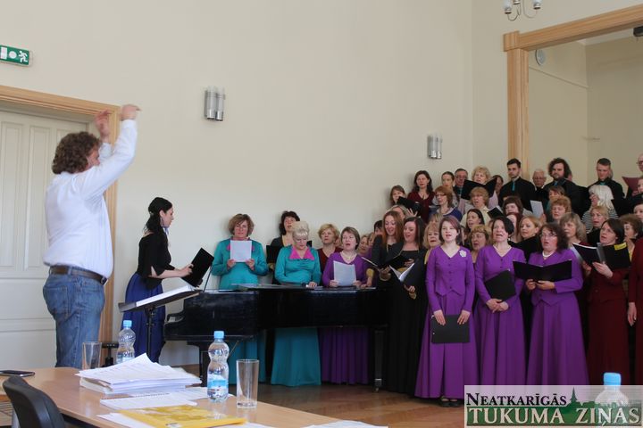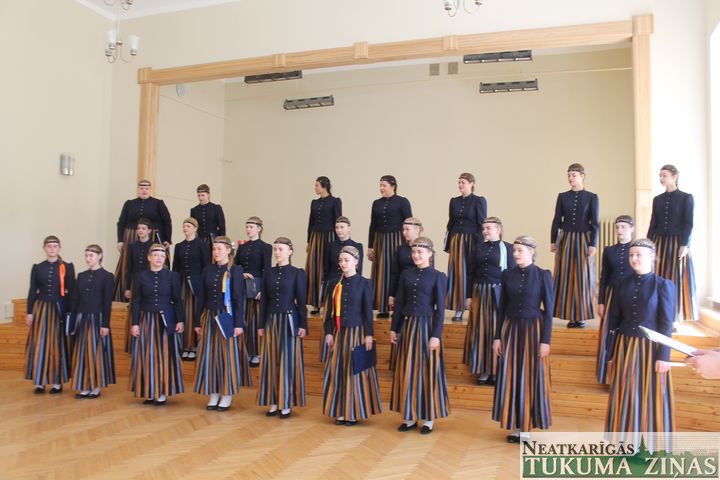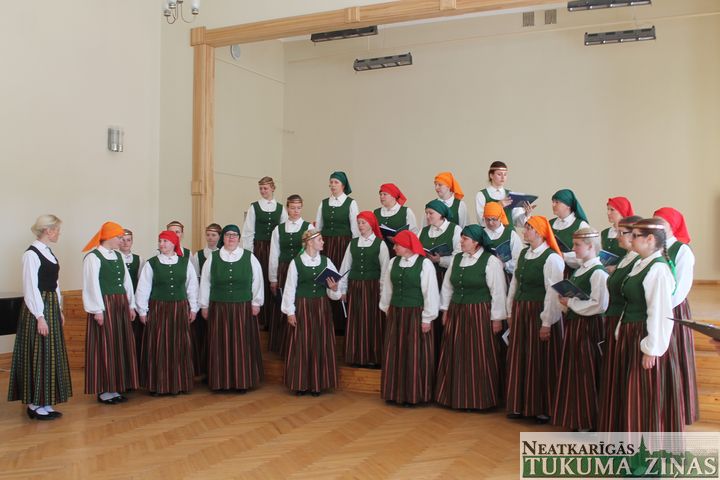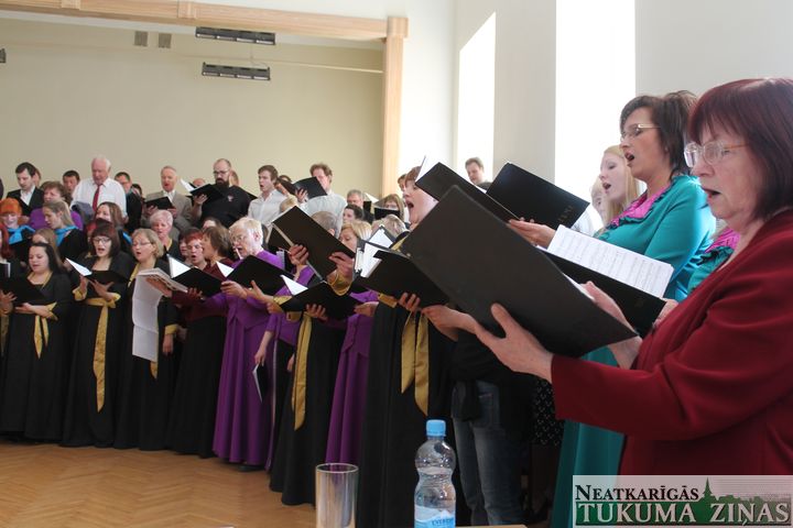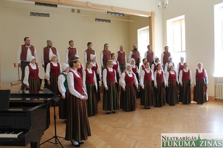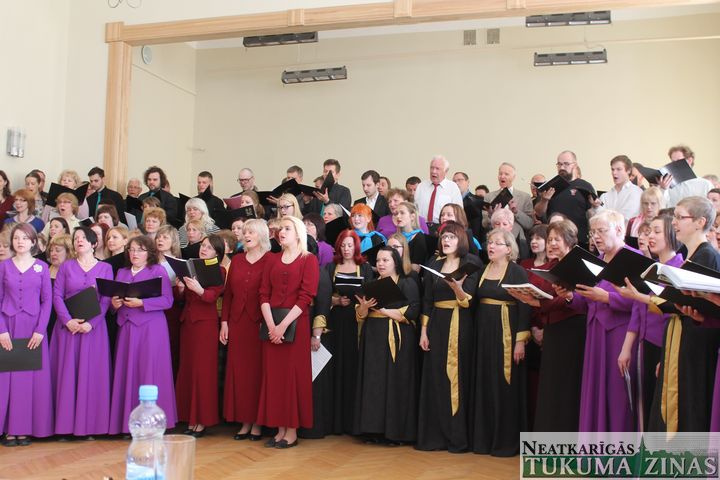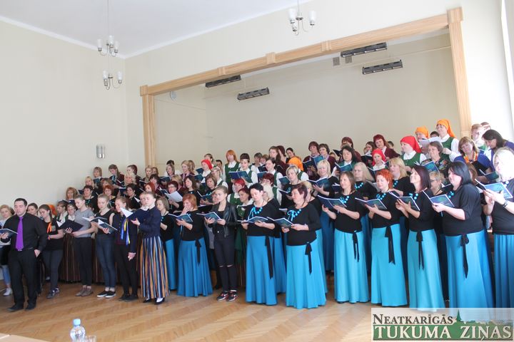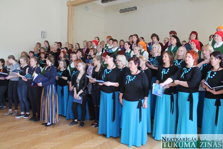 7. maijā Tukuma Raiņa ģimnāzijas zālē Tukuma koru apriņķa skatē piedalījās 15 kori no Tukuma, Kandavas, Jaunpils novada, Nīgrandes, Novadniekiem un Jelgavas. Viņus vērtēja Dziesmu svētku virsdiriģents un Tukuma koru apriņķa virsvadītājs Romāns Vanags, Dziesmu svētku mākslinieciskais vadītājs un Cēsu koru apriņķa virsvadītājs Mārtiņš Klišāns un komponists Rihards Dubra.