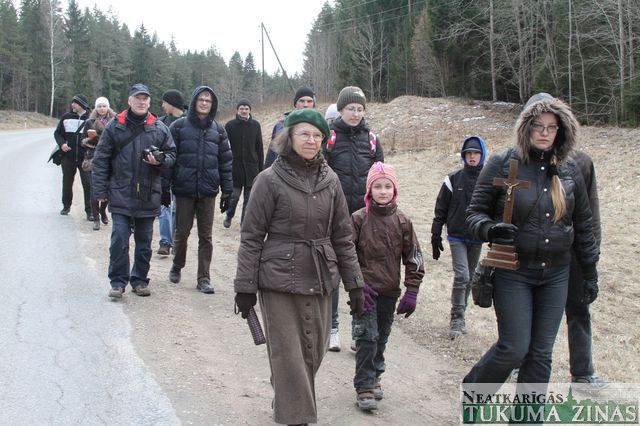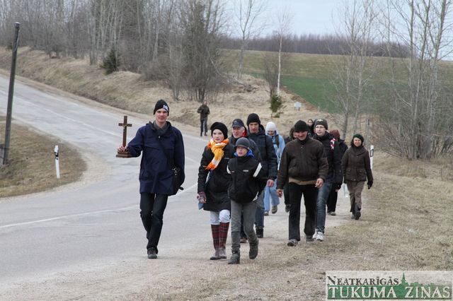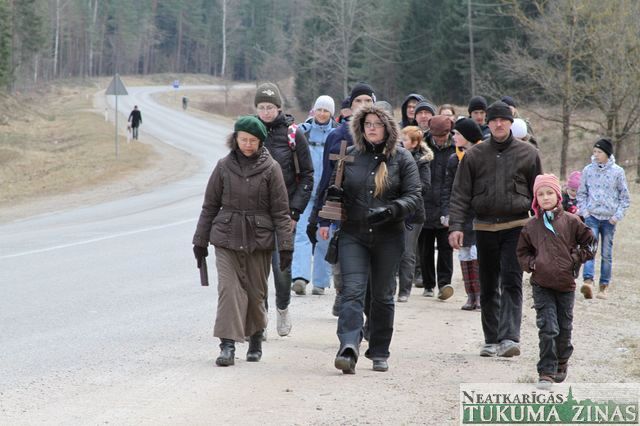 Krusta ceļu šodien, Lielajā Piektdienā, Jēzus Kristus krustā sišanas dienā izgāja Tukuma Evanģēliski luteriskās draudzes ļaudis mācītāja Mārča Zeiferta rosināti. Krusta ceļa gājienā tukumnieki iet otro gadu pēc kārtas. Šoreiz viņiem piebiedrojās ticības māsas un brāļi no Engures draudzes. Piecu stundu laikā – no 13.00 līdz 18.00 – 21 ticīgais nogāja 20 kilometru pa Tukuma apkaimi. 15 pieturās lūdzās par Kristus ciešanām, paši savus un mūsu visu grēkus nožēloja.