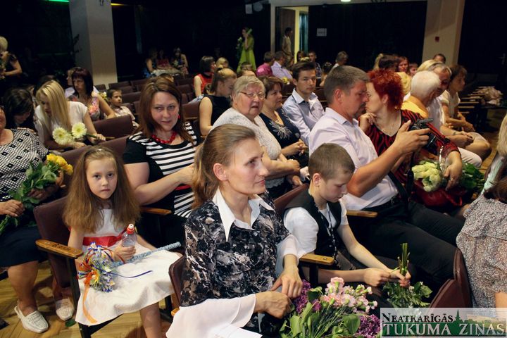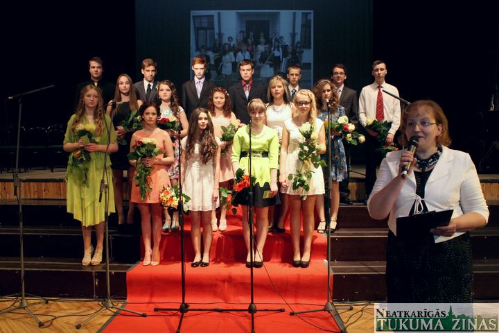 Piektdienas vakarā apliecības par Tukuma Mūzikas skolas beigšanu saņēma: Oskars Bērziņš, Una Birģele, Amanda Būmeistare, Anemarija Gerāsimova, Toms Kļaviņš, Alvis Sala, Andra Upmane, Melisa Votinova, Artūrs Agapovs, Madara Nikolajuka, Anna Digna Dubrovska, Amanda Pabērza, Alvis Grigors, Madara Kukša, Madara Lasmane, Oskars Granapskis un Roberts Vanags. Jaunos mūziķus sveica vecāki un skolotāji.