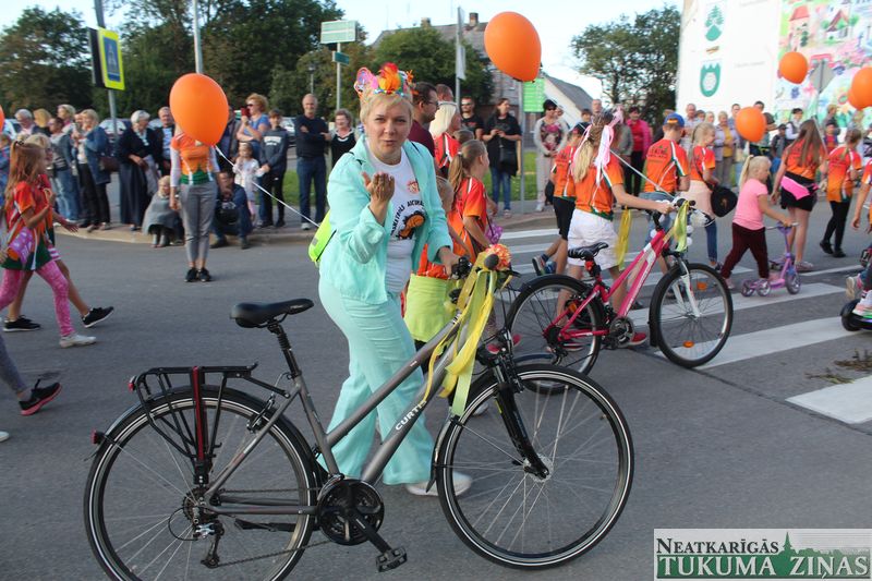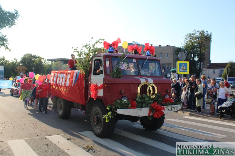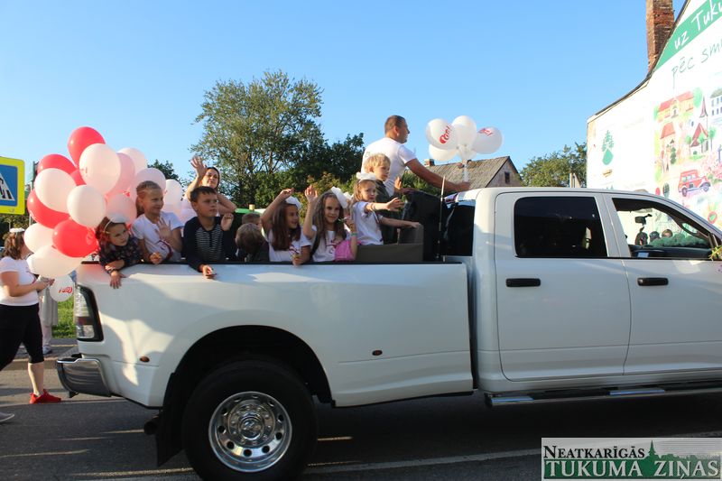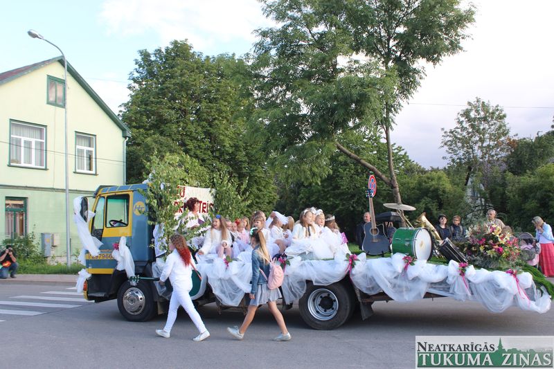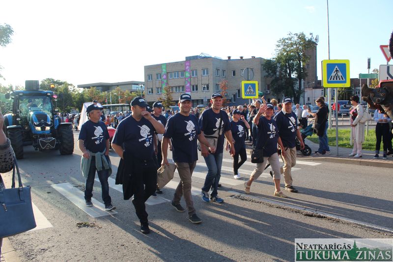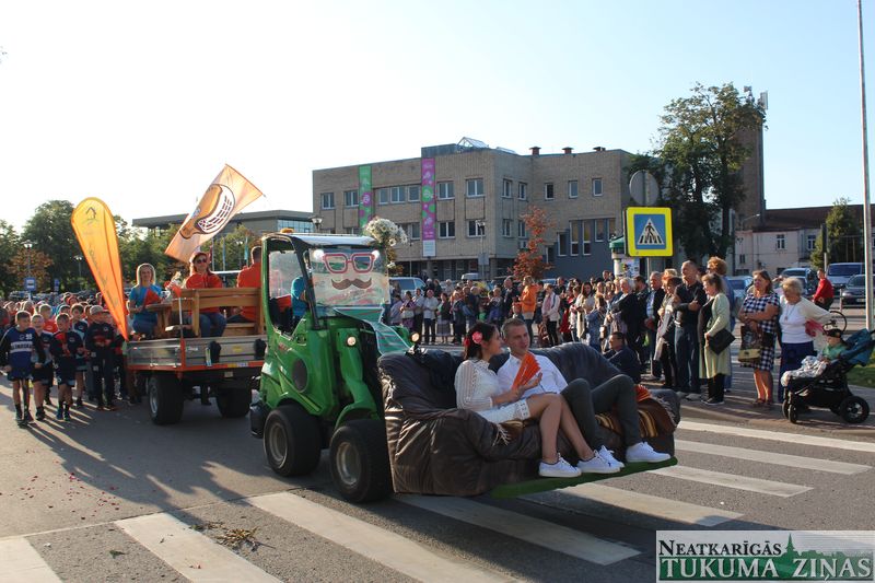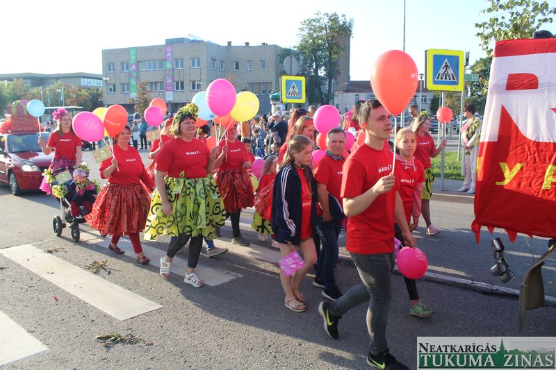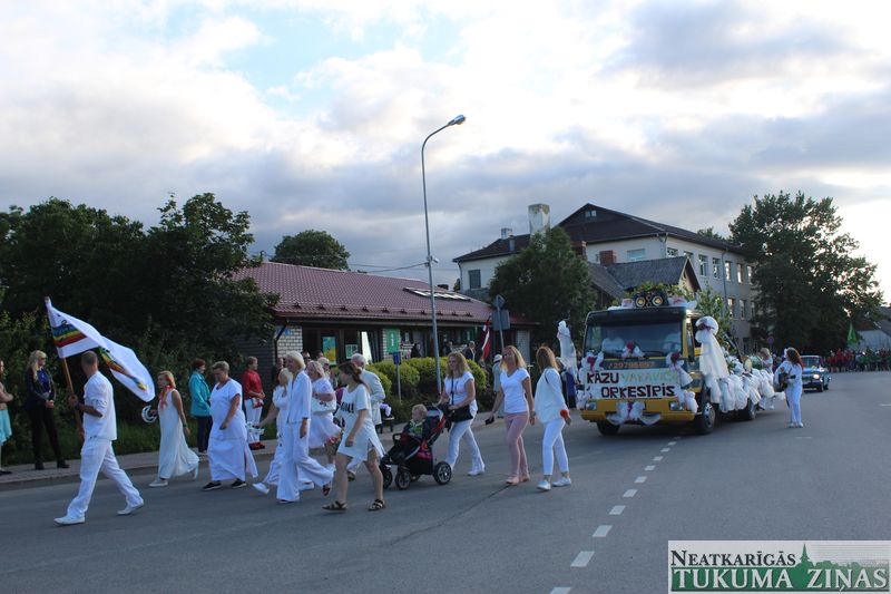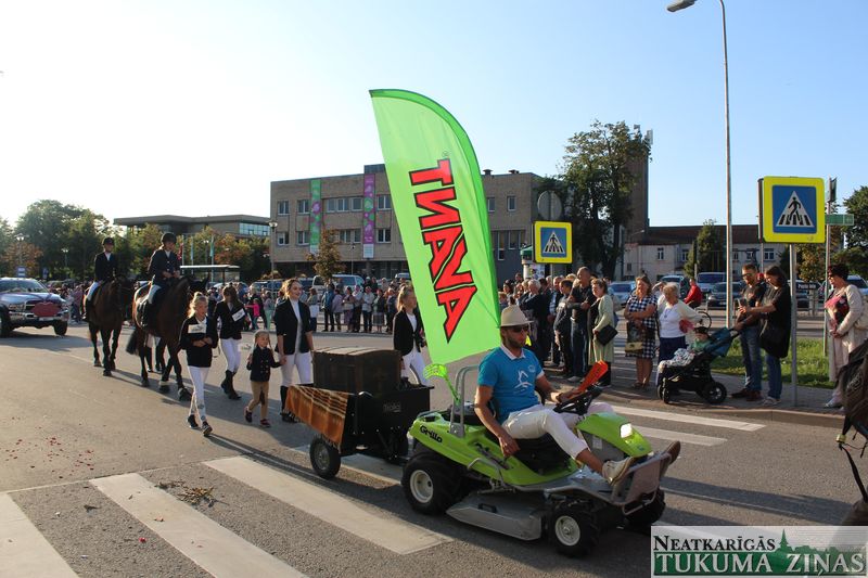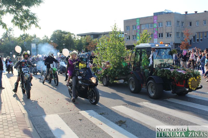 Tukuma novada svētku gājien 13. jūlijā jau otro gadu stājās Tirgus laukumā un Tidaholmas ielā, lai izrādītos pilsētas centrā. Šoreiz vārds “izrādīšanās” tiešām atbilda realitātei, jo šis esot bijis vēsturē garākais gājiens ar kopskaitā 51 dalībnieku. Un tā kā bija izskanējis aicinājums izmantot transportlīdzekli, dalībnieki bija sasēduši piekabēs, platformās, izmantojuši ratus un velosipēdus, skaļus un dūmojošus mocīšus, kā arī guva laimi, paplosot autiņu riepas. Troksnis, dūmi, neparasts noformējums, kā arī milzum daudz cilvēku – kā dalībniekos, tā skatītājos – lūk, ar ko raksturīgs šī gada gājiens.