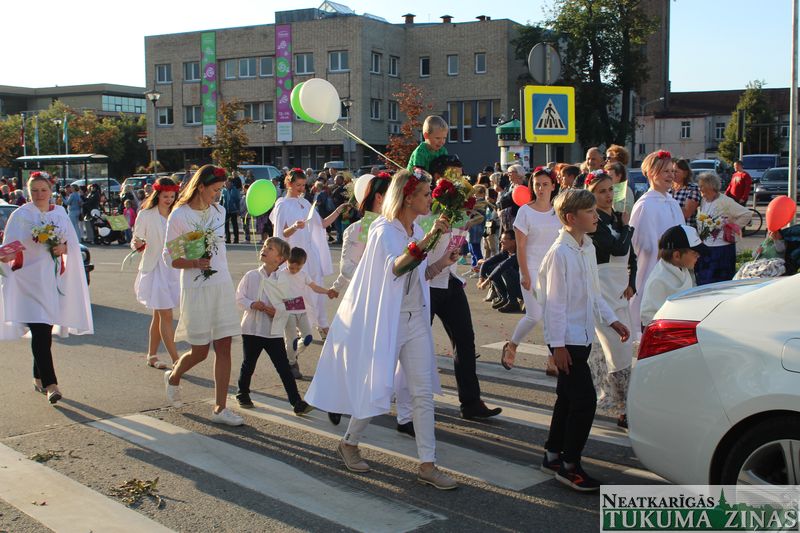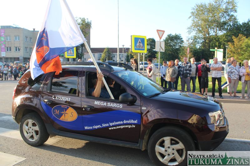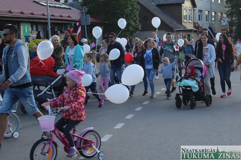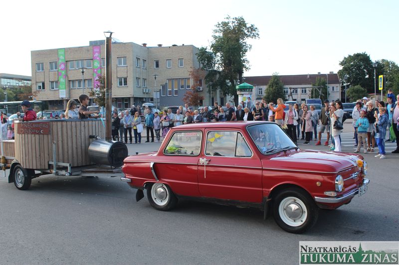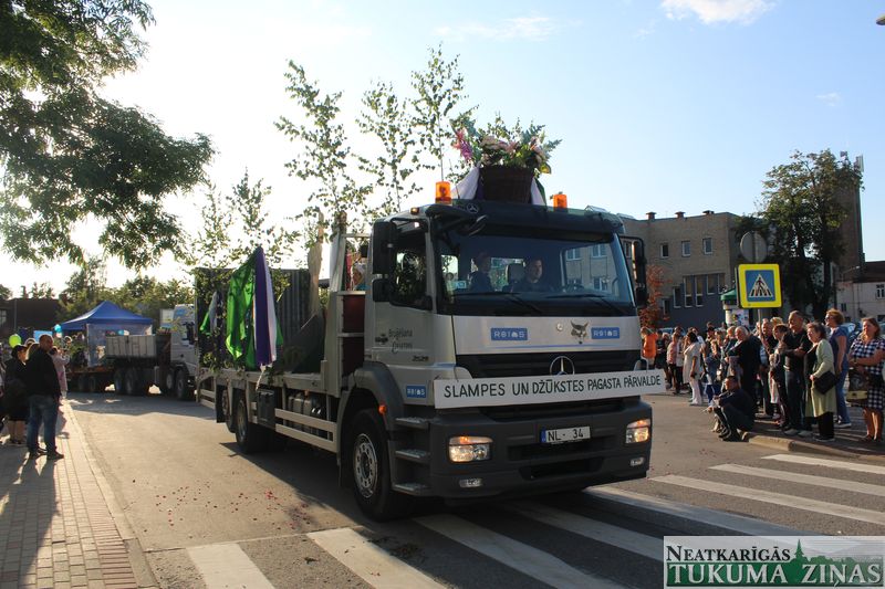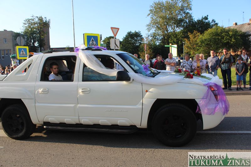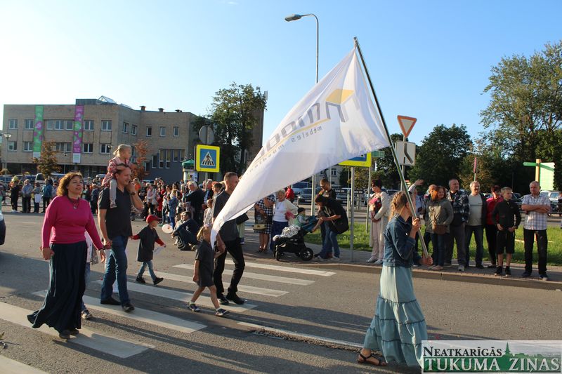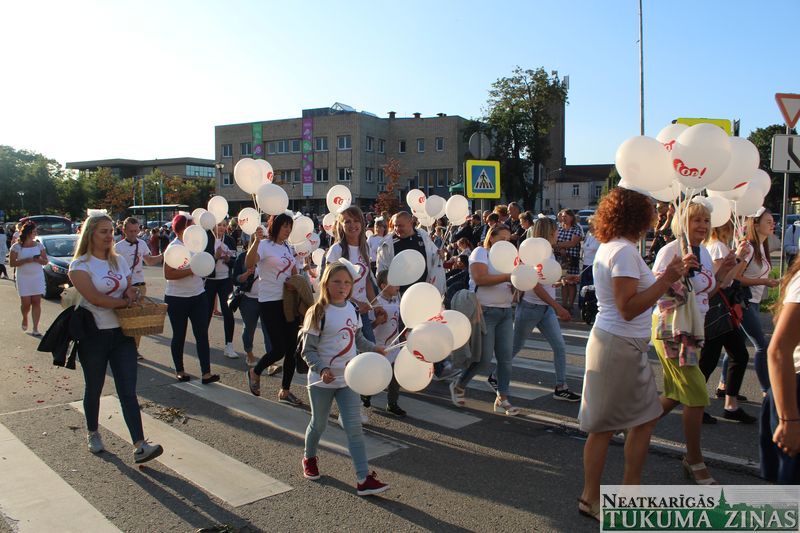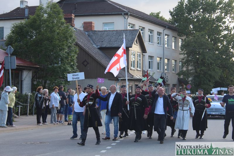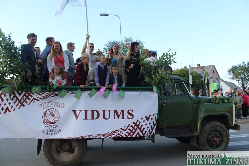 Tukuma novada svētku gājien 13. jūlijā jau otro gadu stājās Tirgus laukumā un Tidaholmas ielā, lai izrādītos pilsētas centrā. Šoreiz vārds “izrādīšanās” tiešām atbilda realitātei, jo šis esot bijis vēsturē garākais gājiens ar kopskaitā 51 dalībnieku. Un tā kā bija izskanējis aicinājums izmantot transportlīdzekli, dalībnieki bija sasēduši piekabēs, platformās, izmantojuši ratus un velosipēdus, skaļus un dūmojošus mocīšus, kā arī guva laimi, paplosot autiņu riepas. Troksnis, dūmi, neparasts noformējums, kā arī milzum daudz cilvēku – kā dalībniekos, tā skatītājos – lūk, ar ko raksturīgs šī gada gājiens.