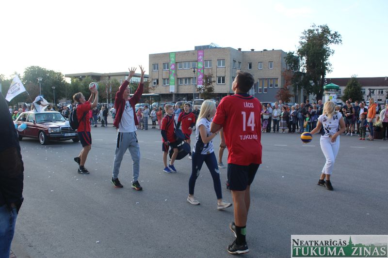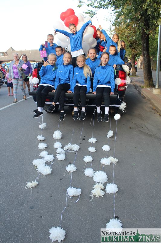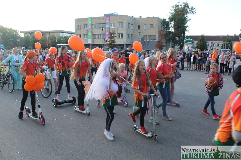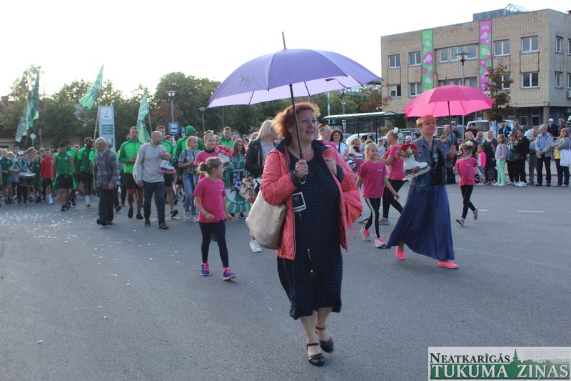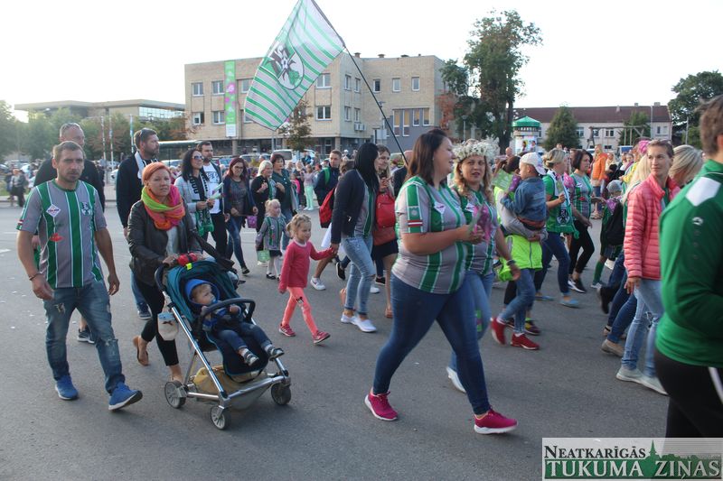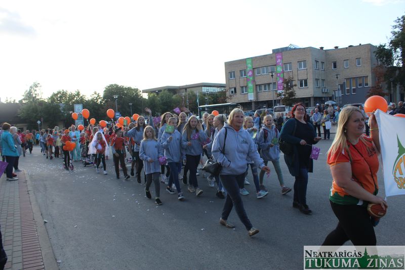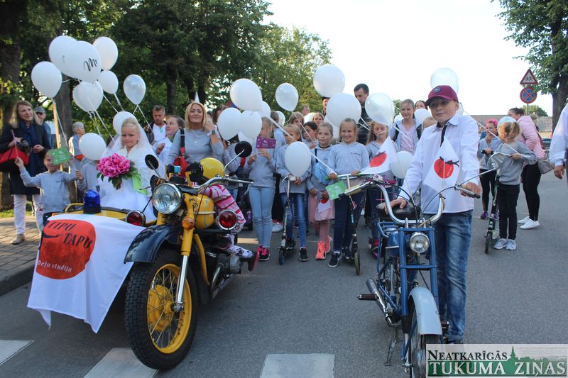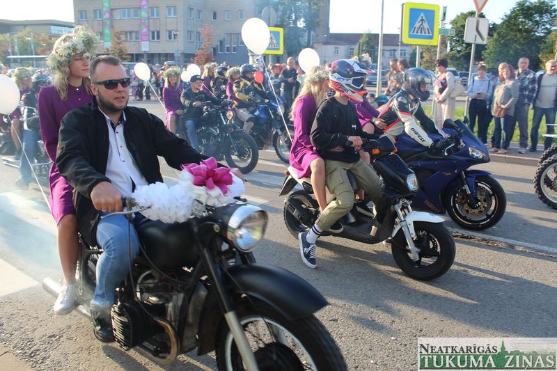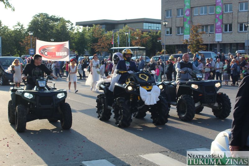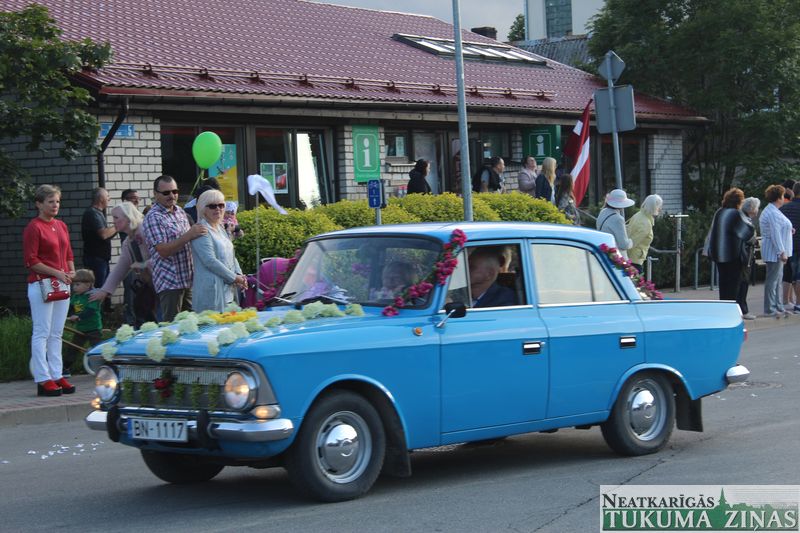 Tukuma novada svētku gājien 13. jūlijā jau otro gadu stājās Tirgus laukumā un Tidaholmas ielā, lai izrādītos pilsētas centrā. Šoreiz vārds “izrādīšanās” tiešām atbilda realitātei, jo šis esot bijis vēsturē garākais gājiens ar kopskaitā 51 dalībnieku. Un tā kā bija izskanējis aicinājums izmantot transportlīdzekli, dalībnieki bija sasēduši piekabēs, platformās, izmantojuši ratus un velosipēdus, skaļus un dūmojošus mocīšus, kā arī guva laimi, paplosot autiņu riepas. Troksnis, dūmi, neparasts noformējums, kā arī milzum daudz cilvēku – kā dalībniekos, tā skatītājos – lūk, ar ko raksturīgs šī gada gājiens.