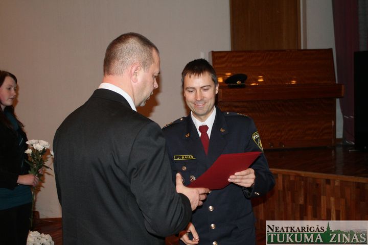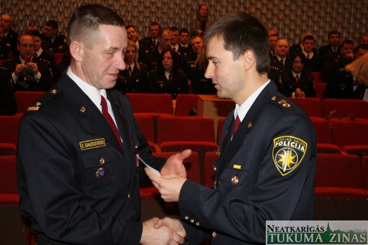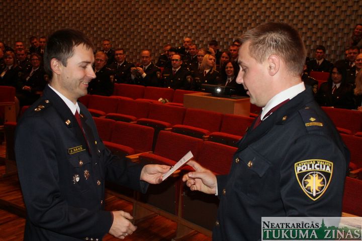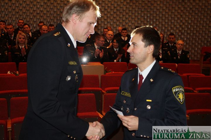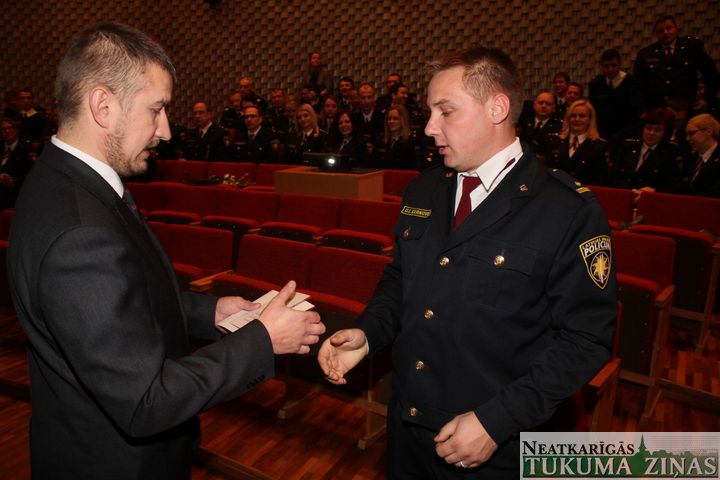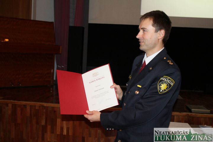 5. decembrī Valsts policijas 95. gadu jubilejā Tukuma novada domes zālē tika sveikti Tukuma policijas iecirkņa darbinieki par labu, teicamu un izcilu darbu.