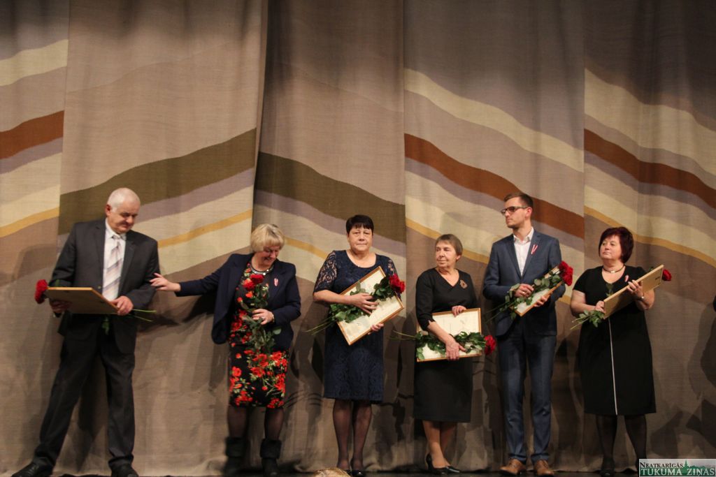 Svētku dienā tika sveikti novada apbalvojumu «Atzinības raksts», Pateicības raksts un Cildinājuma raksts saņēmēji. Ar skaļiem aplausiem tika sveikta apbalvojuma «Tukuma Goda pilsonis» saņēmēja, Tukuma Muzeja direktore Agrita Ozola, savukārt ar ovācijām sarīkojuma dalībnieki pateicās koncertuzveduma «Spēka vārdi Latvijai» veidotājiem un dalībniekiem.