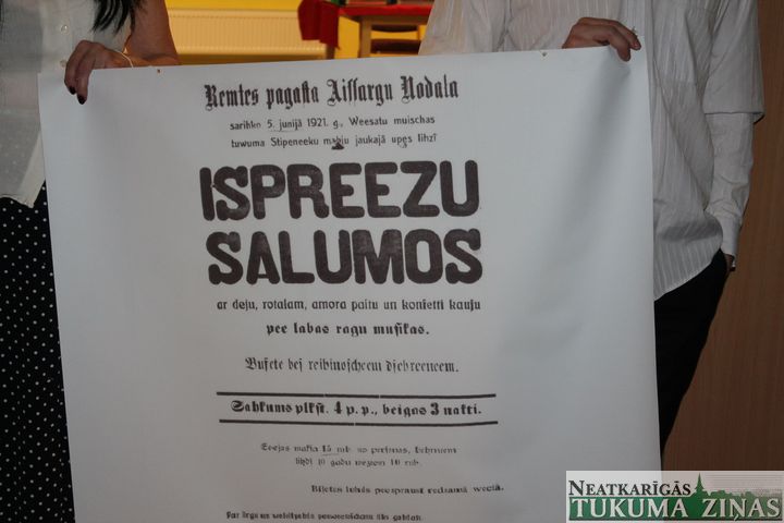 Svinības sākās ar ceļojumu vēsturē, kurā klātesošos aizveda Viesatu bibliotēkas vadītāja Sandra Šteina un Ilze Rasa. Goda vietā tika celtas agrāko laiku afišas. Senākā – 1921. gadā tapušais biedrības Sarkanais Krusts uzsaukums nākt ballēties. Un balles, acīmredzot, bijušas paredzētas īpaši izturīgajiem, jo gadījies, ka tās sākušas tā ap trijiem pēcpusdienā, bet beigušās vien ar pirmajiem rīta gaiļiem! Alkoholu gan kultūras nama bufetē nav tirgojuši un arī ienākumi tik lieli, kā cerēts, nav bijuši (biļete reizēm maksājusi 15 rubļus no personas), bet tas, iespējams, “izklaides nodokļa” dēļ…