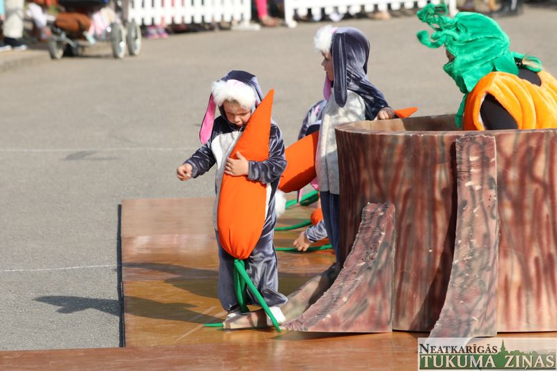 Pasākums bija iecerēts tiešām ļoti skaists! Un bija brīži, kad jutos kā tādos mazos dziesmu svētkos, aizkustinoši! Tomēr organizatori nebija uzdevumu augstumos! Vai tiešām trūka pieredzes šādu pasākumu organizēšanā? Kā var likt vairākiem dejotājiem dejot uz dažām plāksnēm nelielā platībā, kuras pašiem jāsastellē? Mēs runājam par bērniem un viņu drošību!!! Kā var pēkšņi izmainīt pasākuma plānu, kas mazie pirmsskolas bērni jau uziet uz skatuvītes un ir gatavi dejot, kad pēkšņi dejo citi un viņiem apjukumā jāsēž un jāgaida, jāuztraucas vēl vairāk! Vai tiešām organizatori nesaprot ar ko viņi strādā un kam pasākumu organizē? Viņi ir tikai mazi bērni, kuriem uztraukums jau tā ir liels. Vai ir prātīgi vēl radīt papildus apmulsumu, papildus satraukumu! Vai iedomājaties sevi viņu vietā? Iziet uz skatuves, kad pēkšņi tavā vietā uzstājas cits. Uzstājas divi citi priekšnesumi, pa vidu, kamēr jāsēž un jāgaida neizpratnē?! Vai kāds izrādījies labāks, ka šos bērnus nelaiž pie vārda??? Tas nebija smuki! Tas bija diezgan nekaunīgi! Nebijāt sagatavojušies šo bērnu uznācieniem, kā pieklājas – ne nodrošināti atbilstoši apstākļi, ne dota iespēja uzstāties tam paredzētajā laikā. Plus vēl ņirgāšanās par mazajiem cilvēciņiem, kuri izturējuši godam visu karsto sauli, lielo gājienu, kas arī mazajiem cilvēkiem nebija īsti piemērots! Gribētos tomēr kādu skaidrojumu no organizatoru puses, kas ir bijis par svarīgu iemeslu šādai rīcībai!