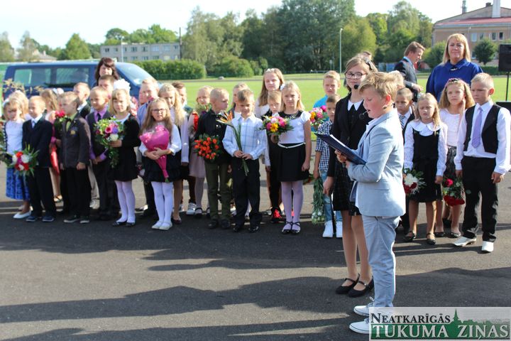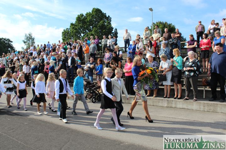 Vispirms skolēni pulcējās gājienam uz stadionu. Gājiena priekšgalā skolas un Latvijas karogi, skolas vadība, viesi. Svinīgā līnija sākas ar valsts himnu. Tad skolas direktore Ilze Kalnozola pastāstīja par vasarā veiktajiem darbiem. Tika sveikti arī visi 11 pirmās klases skolēni, viņiem svinīgi pasniedza apliecinājumus, ka bijušie pirmskolnieki nu ir pilntiesīgi Engures vidusskolas 1. klases skolēni.