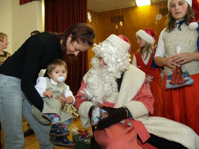 27. decembrī ap simtu pašu mazāko pagasta iedzīvotāju, – tos, kuri neapmeklē ne skolu, ne bērnudārzu, pie sevis Slampes kultūras pilī aicināja Ziemassvētku vecītis. Viņam, dāvanas dalīt un dzejolīšus klausīties, palīdzēja skolas Rūķi. Ar dziesmiņām priecēja meiteņu ansamblis un skolotāja Anita Geidāne.