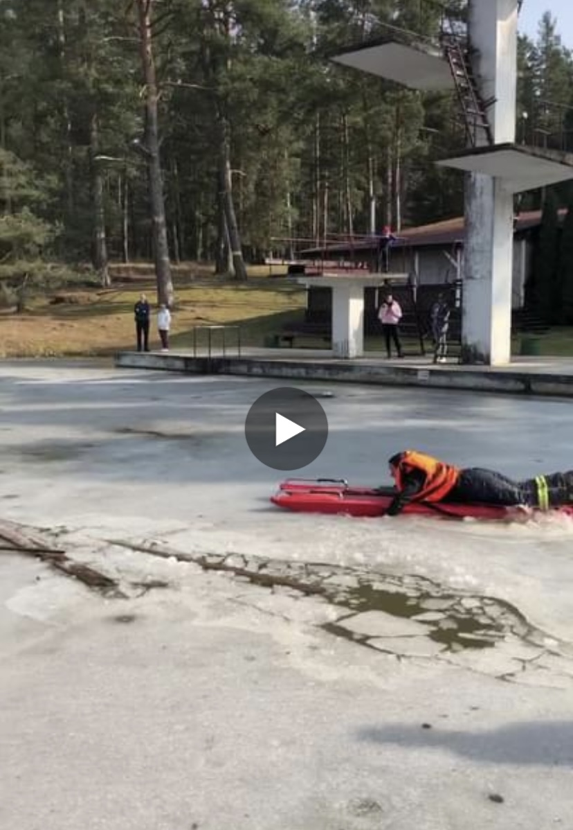 Aculieciniekam izdevies nofilmēt, kā ugunsdzēsēji glābēji Kandavā izglābj āra baseina ledū ielūzušu sunīti. Klātesošie – uzgavilē glābējiem.