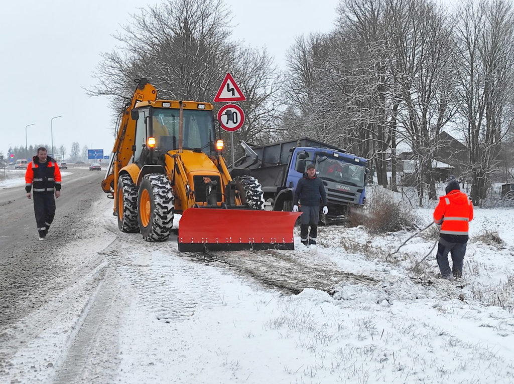 Šorīt, 8. janvārī, netālu no Tukums-Jelgava apļa apsnigušais ceļš ir bijis gana viltīgs un no braucamās daļas nodzinis kravas auto. Brīdī, kad negadījumu fiksējām, notika auto atbrīvošana no grāvja gūsta.