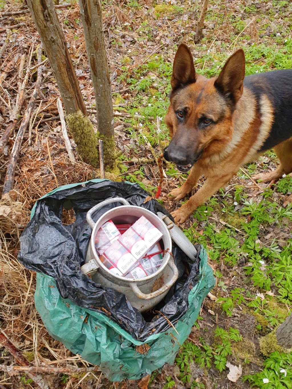 Trešdien, 29. aprīlī, Kandavas novadā policisti sadarbībā ar kinologu Gintu un suni Darvinu atklāja un izņēma 8 960 cigaretes bez Latvijas Republikas akcīzes markām.