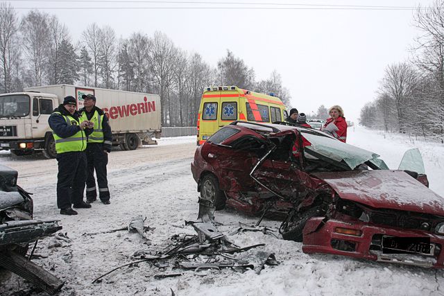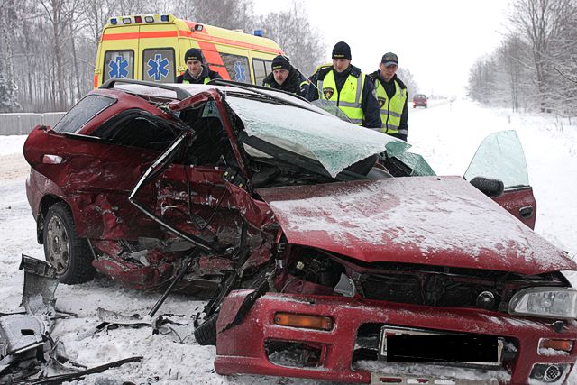 Pēc bildes spriežot tajā vietā BMW varēja iet ar ~60Km/h, Subaru, droši vien brauca kā lepnais (4WD, yay !), pieņemsim ka uz ierastajiem 110Km/h, saslīdēja, kautko abi gan jau ka sabremzēja, katrs pieņemsim pa 20Km/h, tātad BMW ar purnu Subārim sānos, summārais ātrums aptuveni 130Km/H. Drošības josta šitāda trieciena laikā neko nesargā, baloni ar neko nedod. Neredzu neko neizskaidrojamu un nekādus 'baigos ātrumus', nav neviens neko uzrāvis un neko darījis (pamēģini pats ar BMW ātri uzraut uz slidena ceļa, pakaļa aiziet nafig ātri vien, vienalga kādas riepas, te tev nav pliks asfalts).