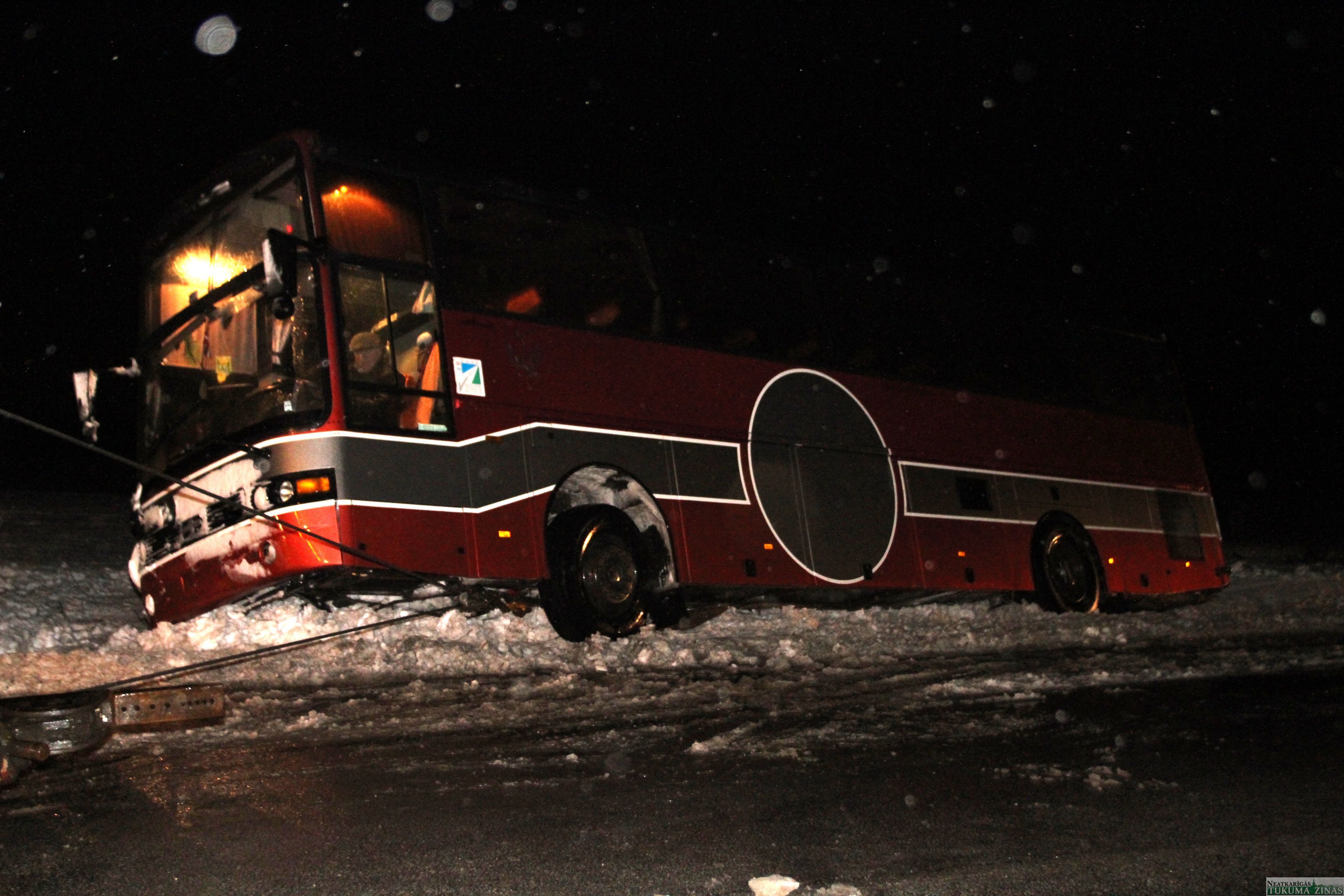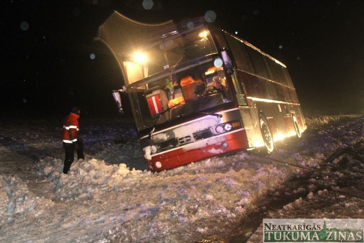 30. janvārī ap 16.36 Rīga-Ventspils šosejas 60. km (pie bijušās, šobrīd izdemolētās degvielas uzpildes stacijas) autobusa VANHOOL šoferis izvēlējies laika apstākļiem neatbilstošu ātrumu, kā rezultātā transportlīdzekli sanesa, tas noslīdēja no ceļa braucamās daļas un apgāzās uz sāniem. Kā mūs informēja policijas ekipāža – autobusā brauca Kandavas internātvidusskolas audzēkņi. Tukuma slimnīcas uzņemšanas nodaļā līdz šim brīdim neviens no autobusa pasažieriem nav hospitalizējies. Ugunsdzēsēji glābēji pa jumta lūku no autobusa palīdzēja izkļūt 15 bērniem un četriem pieaugušajiem.