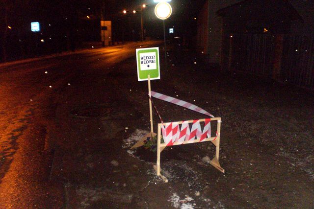 - pateicoties šajai zīmei es pamanīju visas pilsētas bedres! Malači, tie kas nesēž malā un negaida, kad kāds cits sāks kaut ko bīdīt :))))