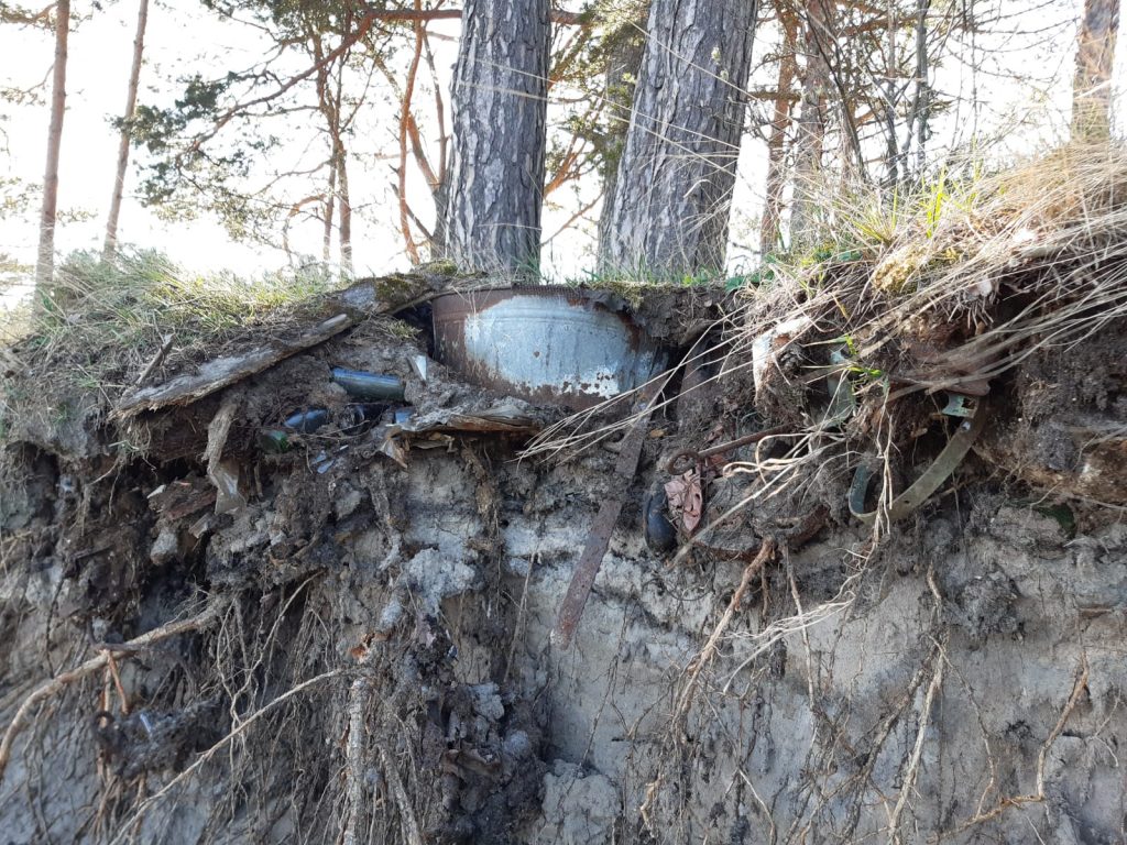 Taču viena no pēdējām vētrām ir atklājusi kādu senāku “nedarbu“ – izskalojusi atkritumu kaudzi, kas, acīmredzot kādā brīdī te ir tapusi aprakta. Foto autori vaicāja, ko šādos gadījumos lai dara un pie kā vēršas?