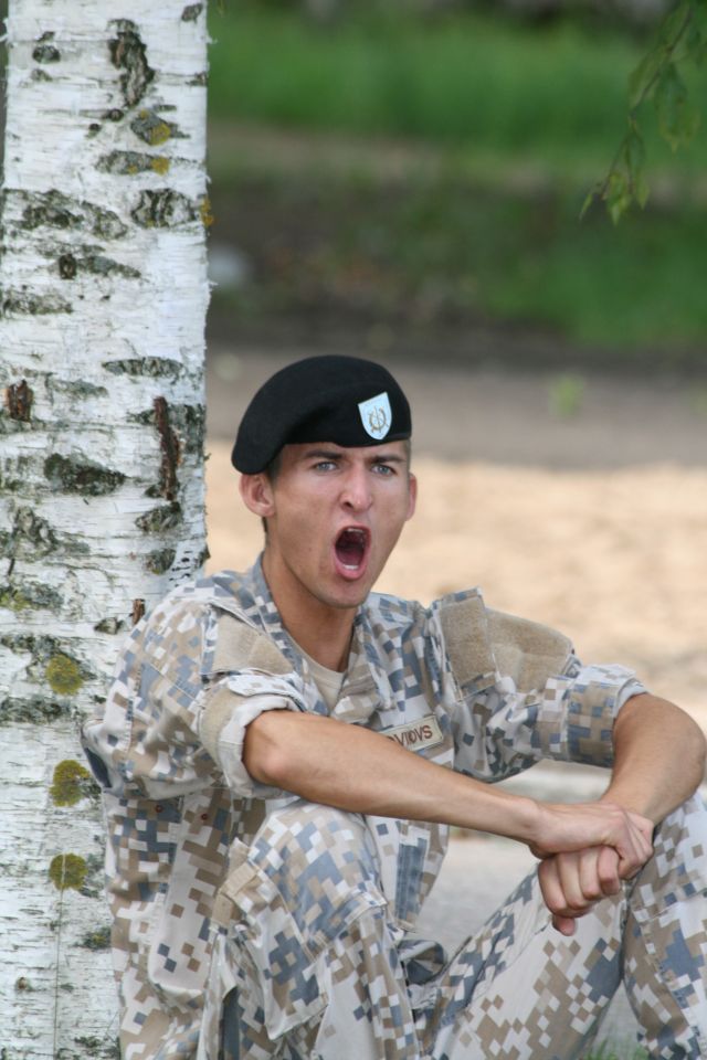 Karavīriem jābūt stipriem un izturīgiem. Viens no labas fiziskās formas uzturēšanas paņēmieniem ir sporta spēles. Foto izstādes apmeklētāji varēs redzēt visfantastiskākos lēcienus un piruetes, kas tiek veiktas pludmales volejbola spēles laikā.