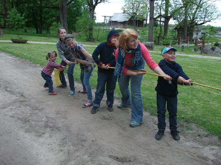 Bērni meta bumbas, bariņā lēca ar lielo auklu, zālājā spēlēja riču-raču. Lielus smieklus izraisīja virves vilkšana. Un kur tad vēl iespēja pabaudīt karuseļus! Pieaugušie pa to laiku varēja parunāties un vienkārši pabūt ārpus mājas sirsnīgā un jaukā gaisotnē.